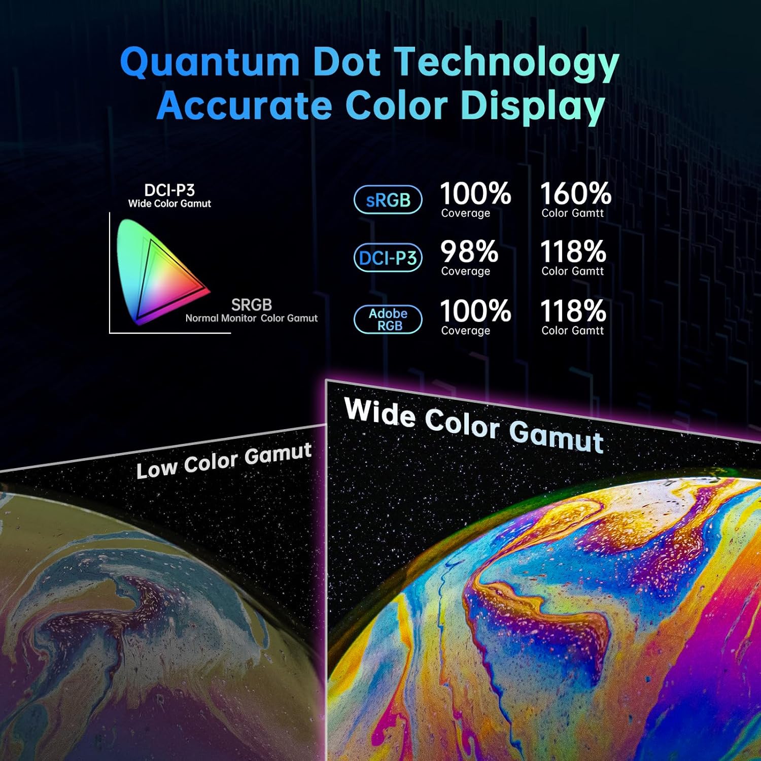 - [HDR1000 and Quantum Dot Technology]Unleash the Colors of Victory. From deep shadows to vivid scenes, enjoy HDR1000 brightness, 100% sRGB, and 98% DCI-P3 for breathtaking colors and a 1M:1 HDR contrast ratio.