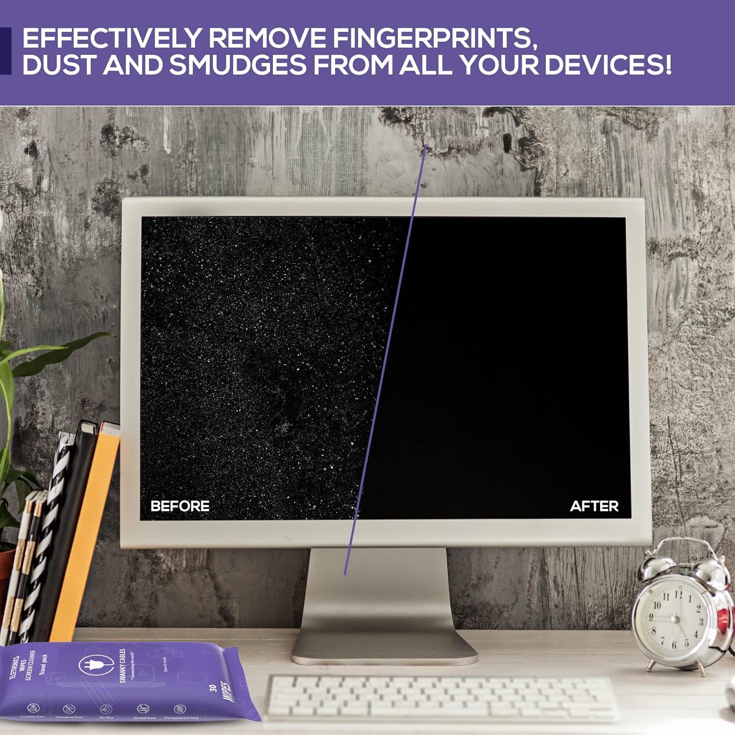 - ALL-IN-ONE CLEANING SOLUTION Our non-scratch electronic screen wipes can be used for tablets, smartphones, laptops, TVs, monitors or even your own glasses!