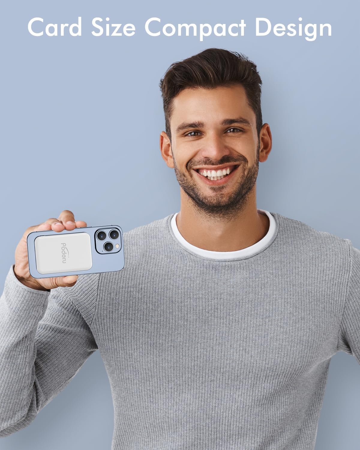 podoru for Magsafe Battery Pack, 5000mAh Magnetic Power Bank with Type-C Cable 20W PD Fast Charging Lighting Input Wireless Portable Charger for iPhone 16/15/14/13/12/ All Series-White