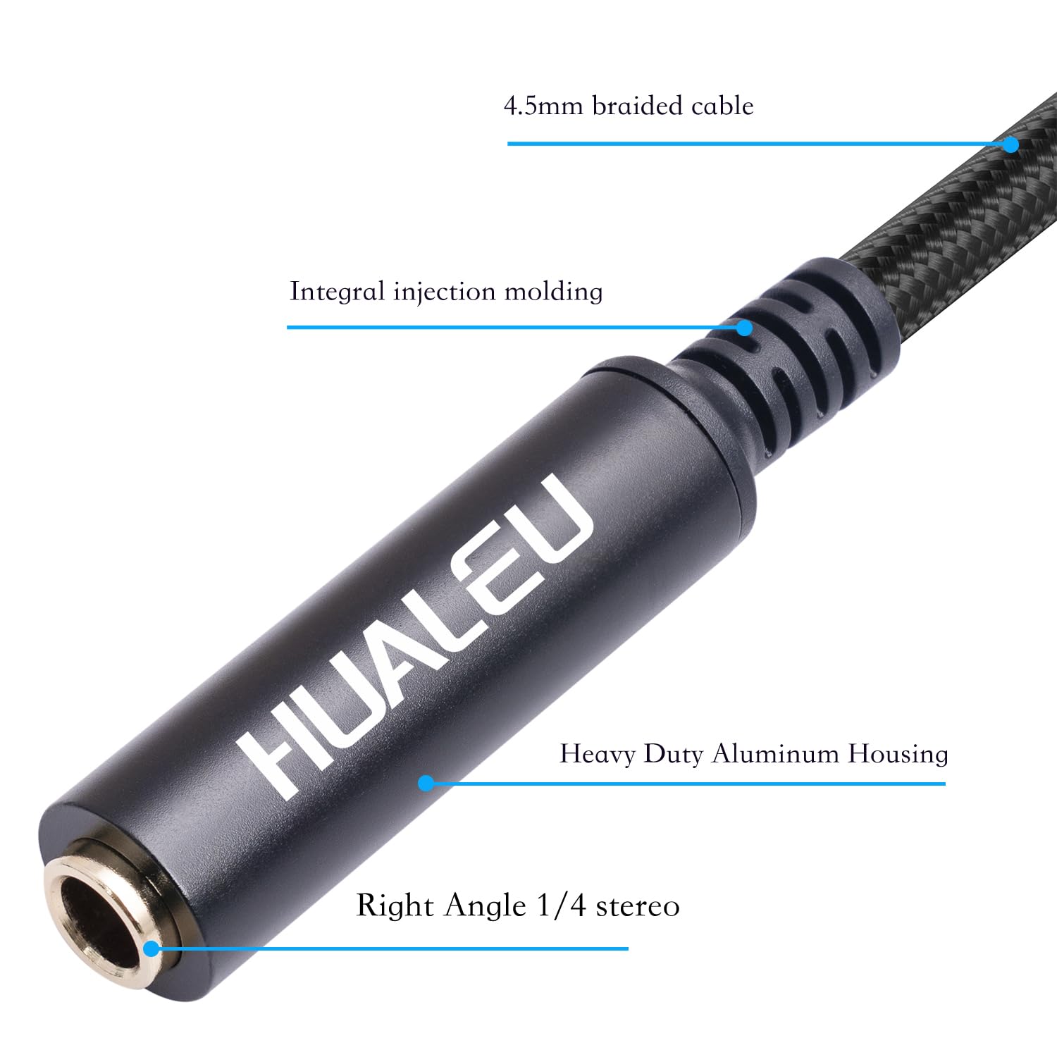 - 1. Fiber Braided Protection: Reinforced with a fiber braided protective mesh, this 1/4 TRS male to female cable by HUALEU exhibits high tensile strength, promising a long lifespan even under rigorous use.