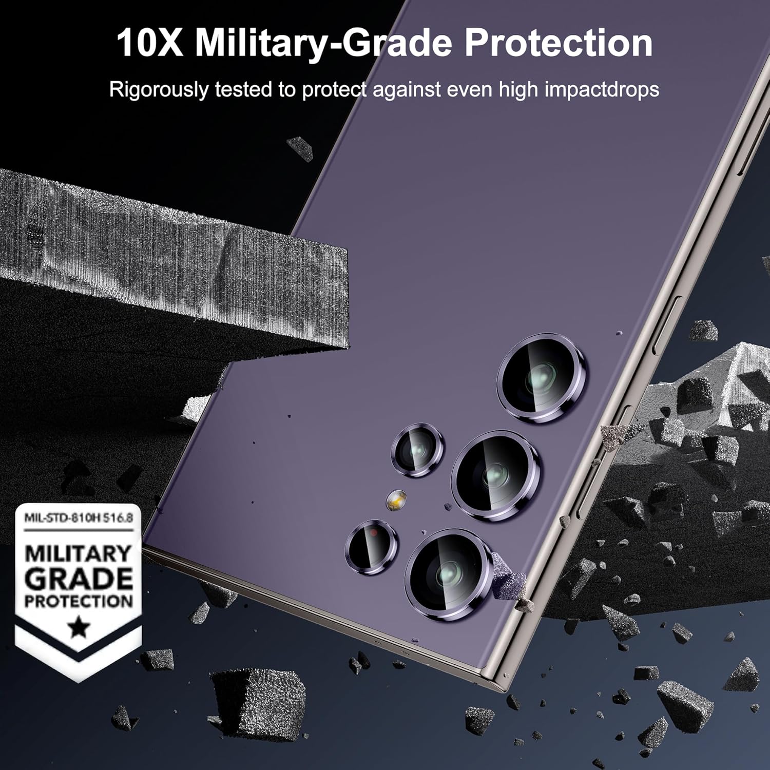 - Military Grade Protection & Anti Fingerprint: Made of space titanium alloy + 9H tempere glass materials, provide powerful scratch resistance against everyday hard and sharp objects. The seal ring is designed to prevent fingerprints, sweat and grease residues. Keep your s24 ultra camera original beauty.