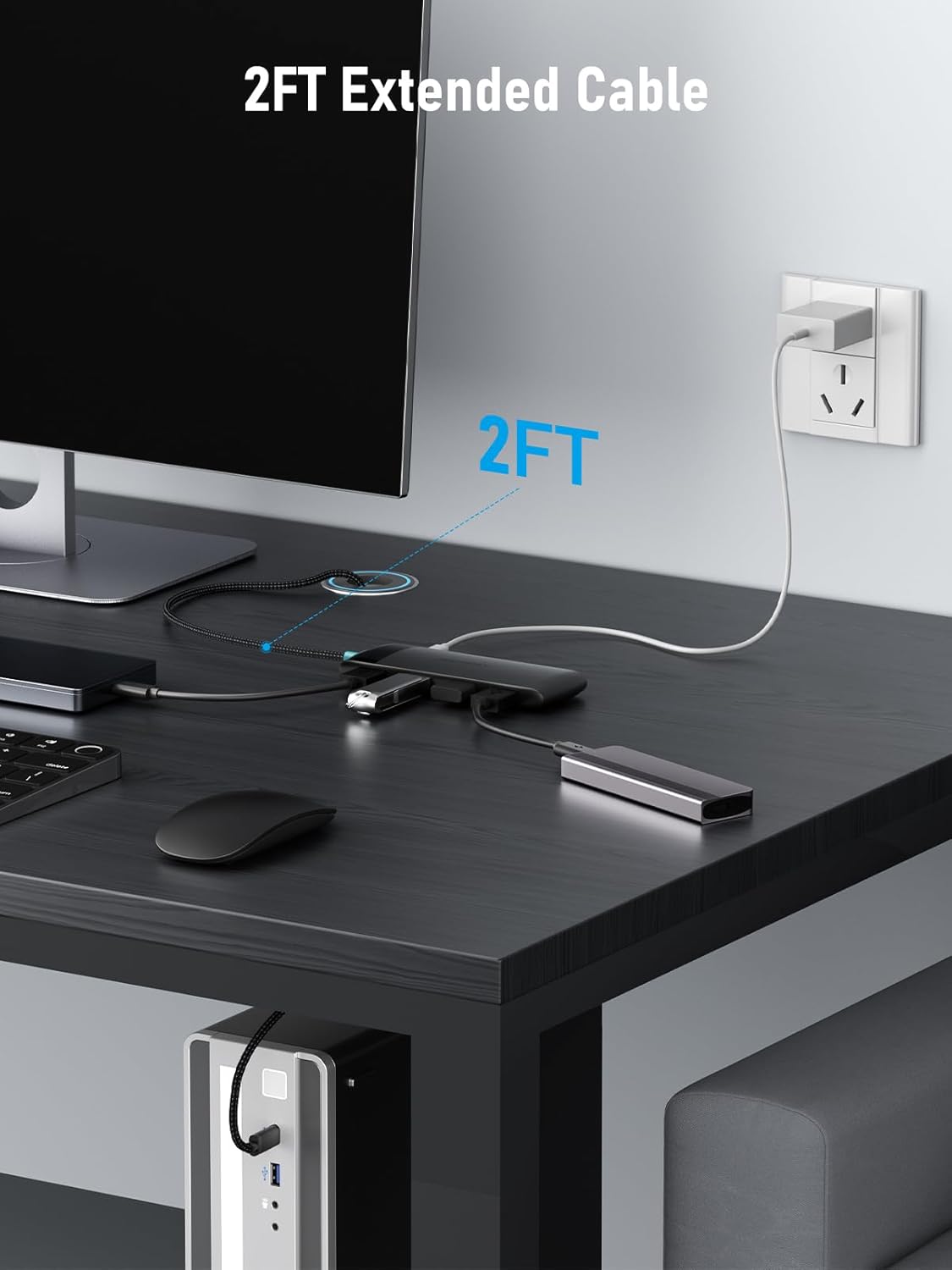 - [Stable and Secure]: This USB C Hub is adopting a stable and safe design, which ensures stable and secure data transmission. It provides over-voltage, over-current, and short-circuit protection that ensures no harm to your device. The power port supplies power when the USB hub is connected to SSD/HDD, Using this Power port for increasing the hub's output power will make data be stable.