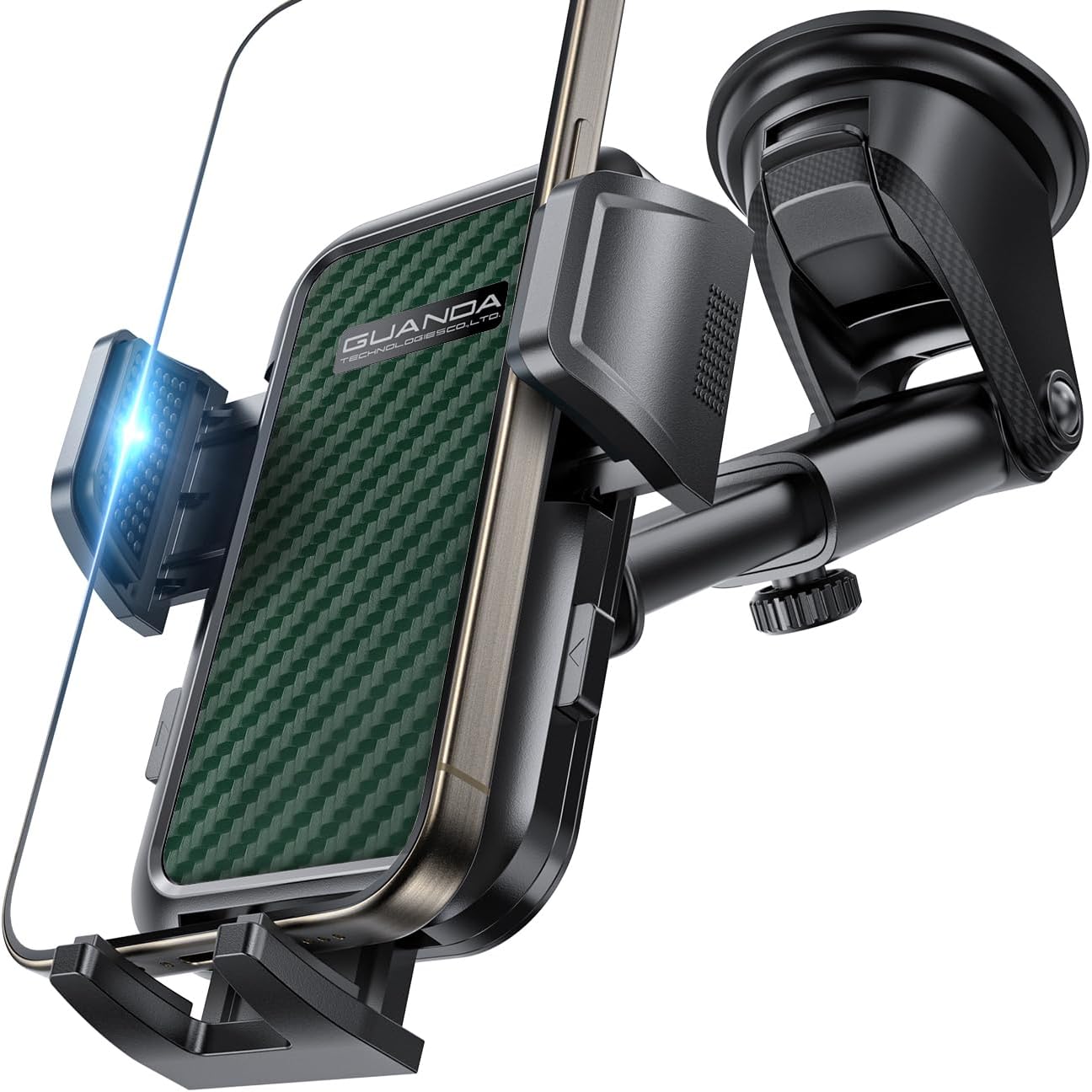 - 【Wide Compatibility】 Guanda car phone holder mount has been verified by 20,000+users around the world and is suitable for 99.99% mobile phone models. The suction cup phone mount has the largest arm (1.35 inches) on the market, making it absolutely suitable for your big mobile phone and thick case, such as Otter box/Pop socket or even wallet case.