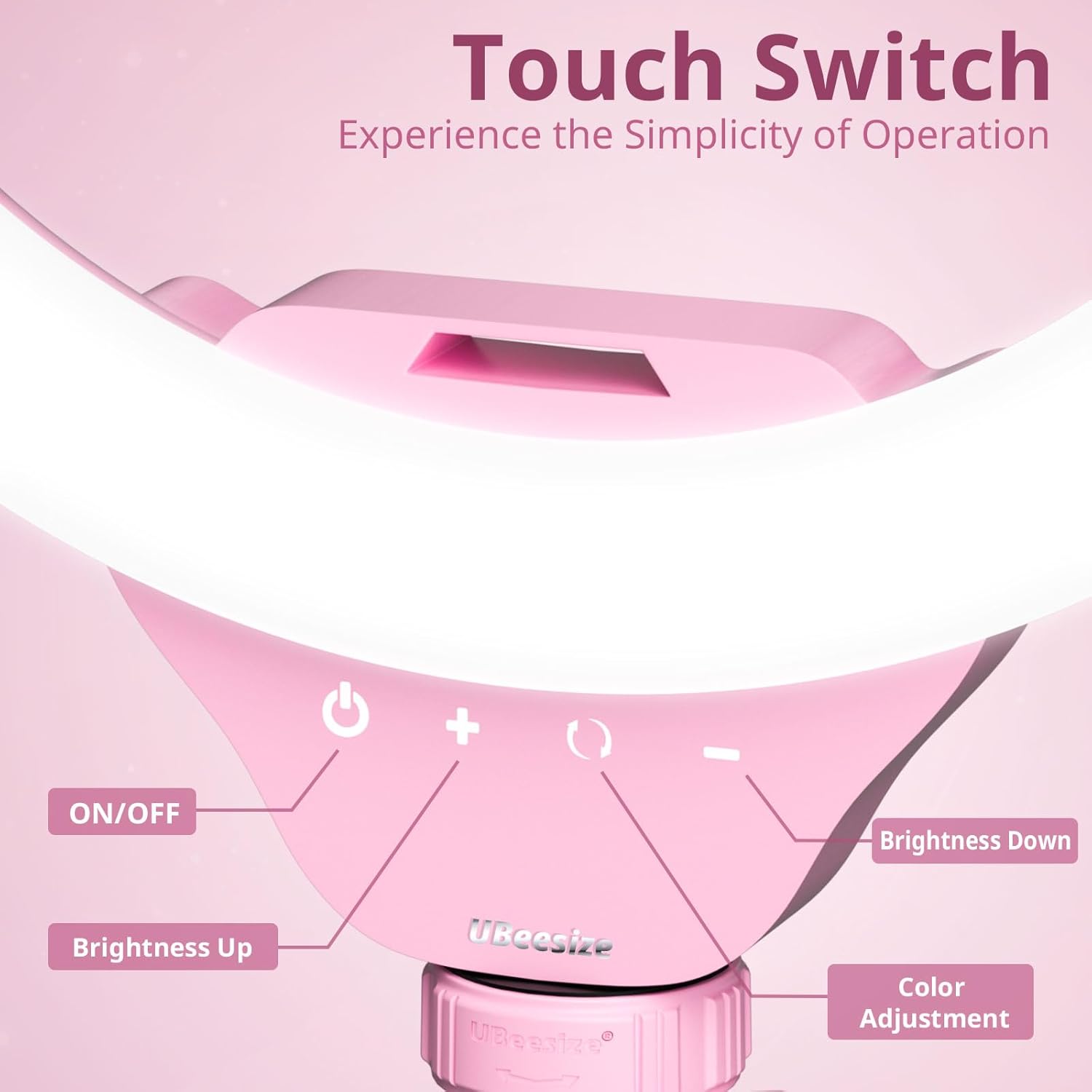 UBeesize 12'' Selfie Ring Light with 62’’ Tripod Stand for Video Recording, Live Streaming(YouTube, Instagram, TIK Tok), Compatible with Phones, Cameras and Webcams Pink