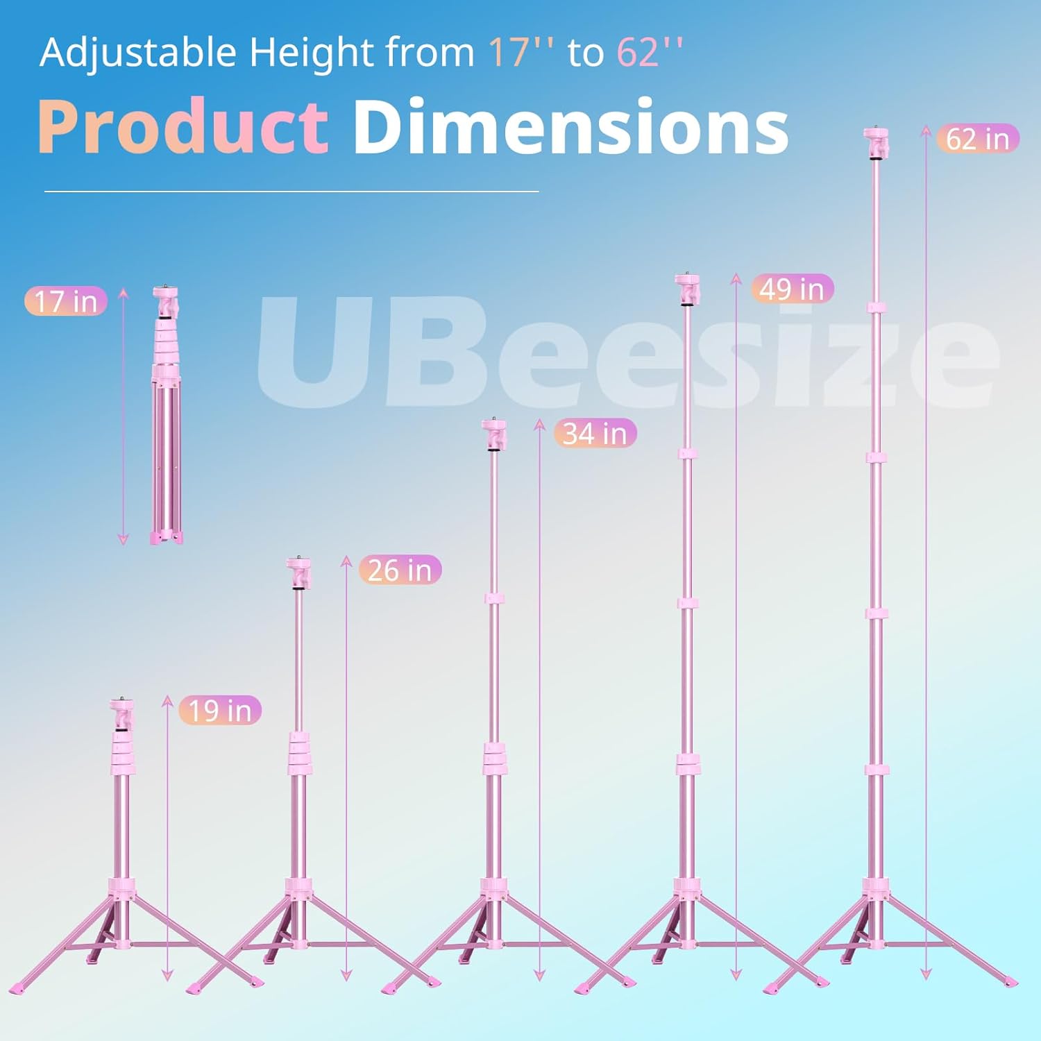 UBeesize 62" Phone Tripod & Selfie Stick, Camera Tripod Stand with Wireless Remote and Phone Holder,Compatible with iPhone Android Phone, Perfect for Selfies/Video Recording/Live Streaming Pink