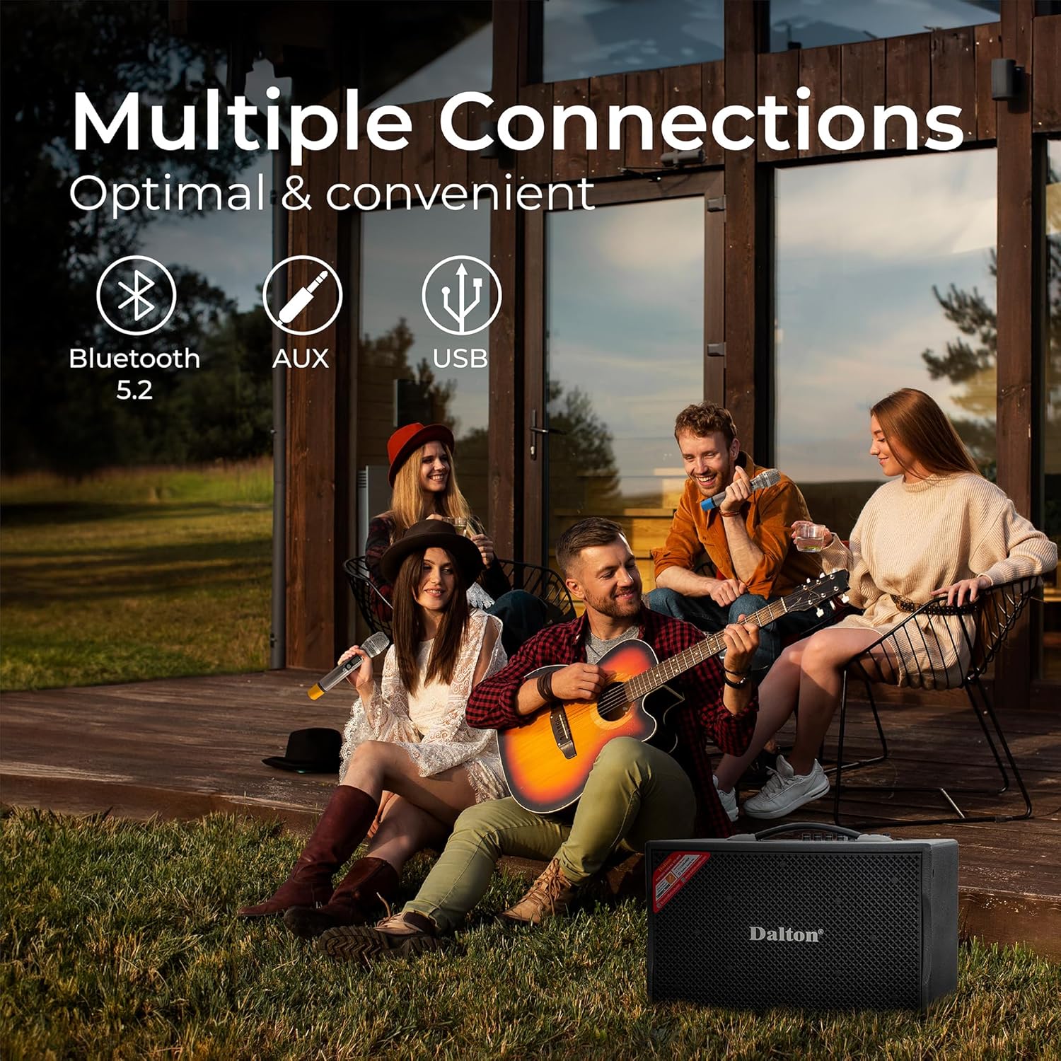- Compatible Devices : TV, Guitar, USB, AUX IN,Wireless Microphone