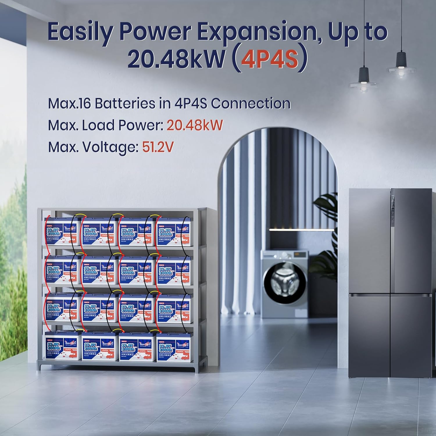 - 【Max.20.48kWh Energy in Connection】With a capacity 100Ah and a Max. load power of 1280W, Timeusb 12V 100Ah group24 LiFePO4 battery can meet the needs of the most electrical appliances. Operation-easy, time-saving, cost-effective, Timeusb 12V 100Ah group24 LiFePO4 battery can support Max. 20.48kWh energy storage by 16 batteries in 4P4S connection. It can not only be used for a variety of RVs, boats and trolling motors but also for off-grid and residential energy storage!