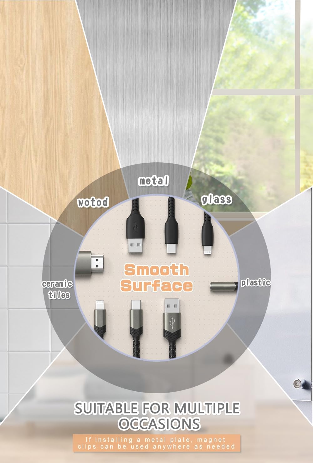 - 【Unlimited Location】It comes with a metal plate with strong double-sided tape, so even if the area you want to store the cable does not attract magnets, you can easily solve it by using a metal plate. It is easy to apply by removing the adhesive tape without any tools.