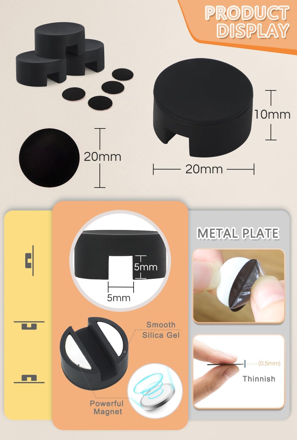 - 【Unlimited Location】It comes with a metal plate with strong double-sided tape, so even if the area you want to store the cable does not attract magnets, you can easily solve it by using a metal plate. It is easy to apply by removing the adhesive tape without any tools.