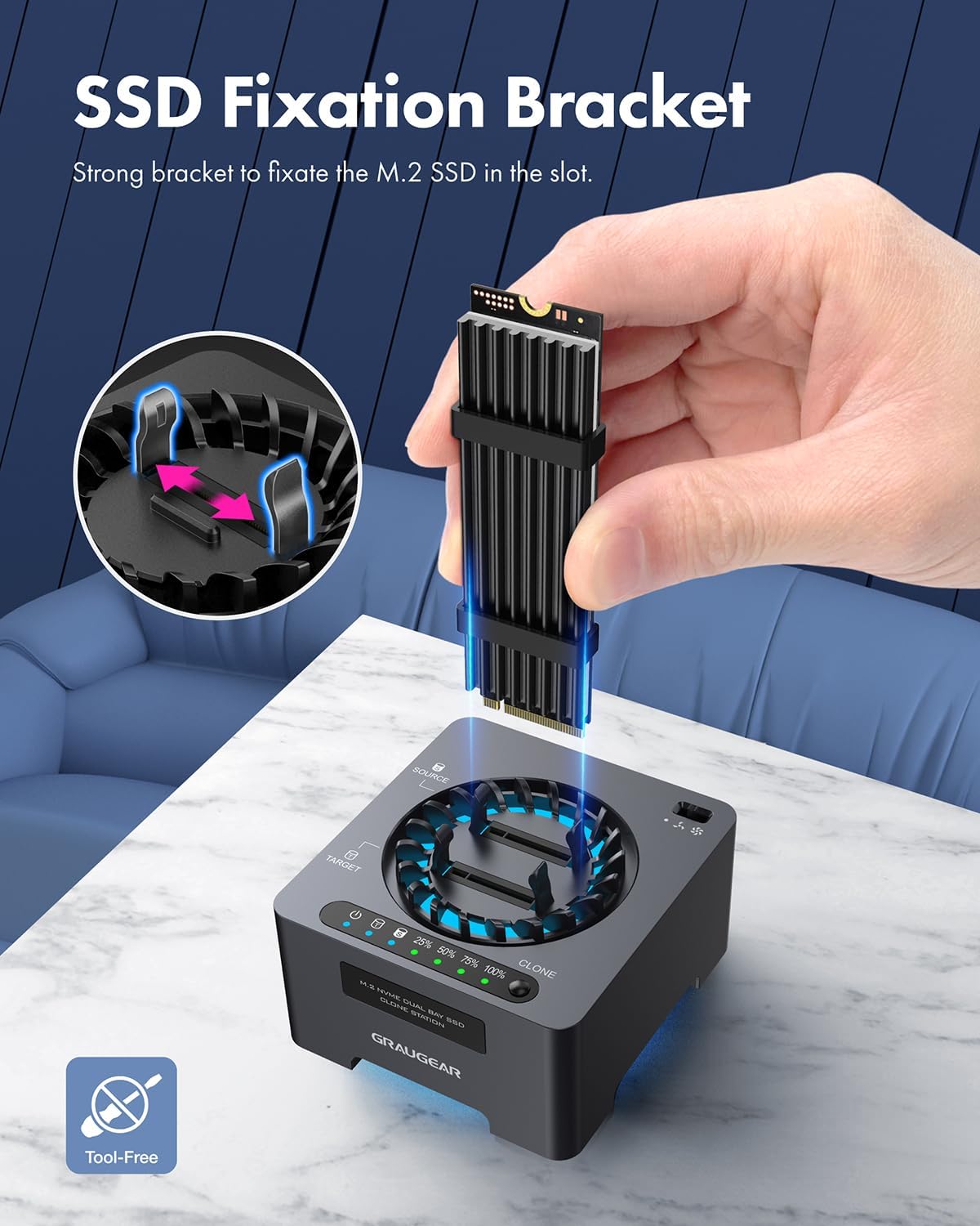 GRAUGEAR NVMe M.2 SSD Duplicator Dual-Bay Offline Clone Tool-Free, 20Gbps USB C to M.2 SSD Drive Cloner Docking Station Adapter Enclosure for M2 SSD Hard Drives M-Key