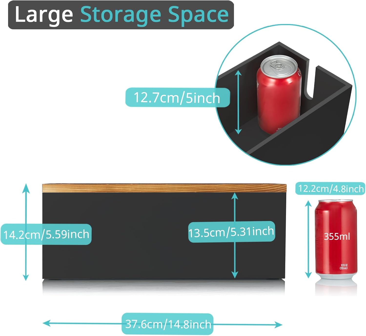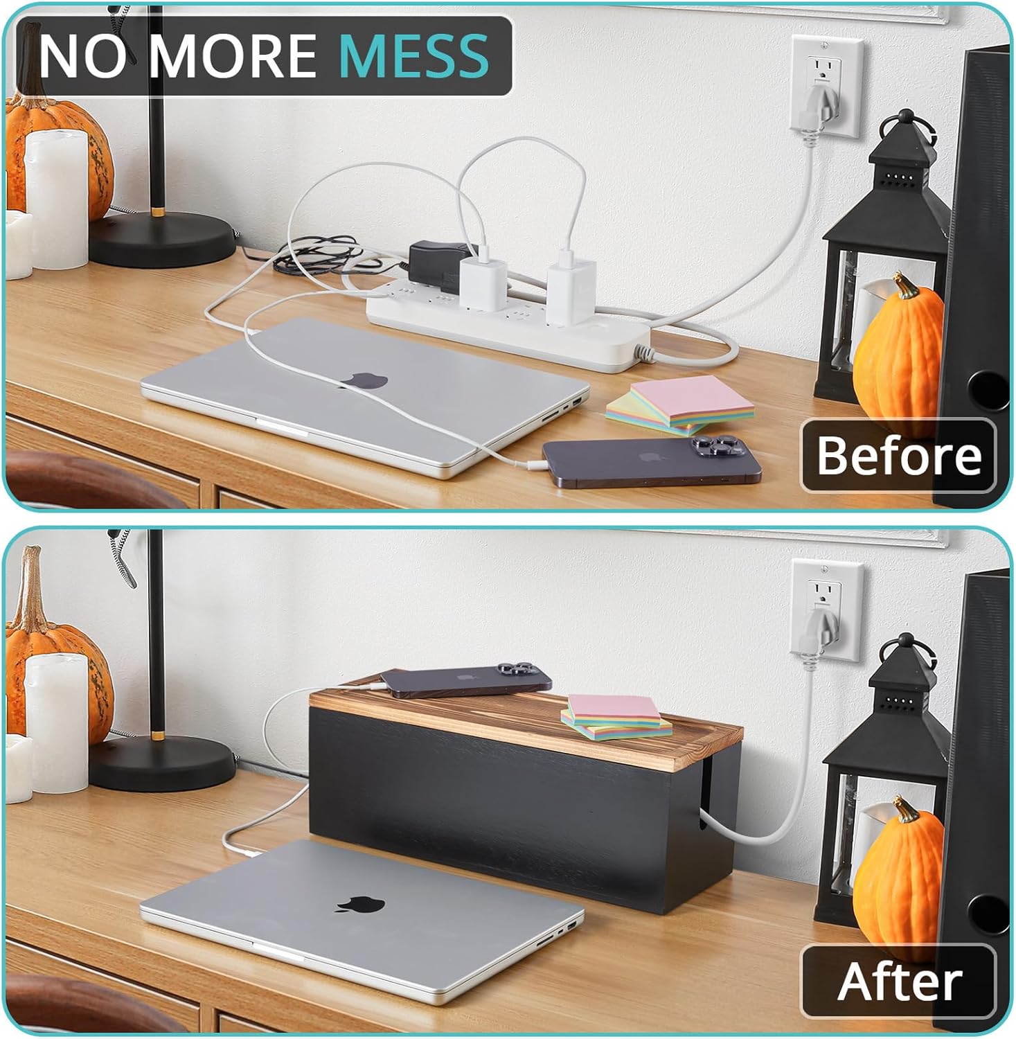 Bivvclaz Large Cable Management Box, Wooden Cord Organizer Box for Desk, Floor, Office to Hide Extension Cords Power Stripes Surge Protectors Chargers Wires, Black