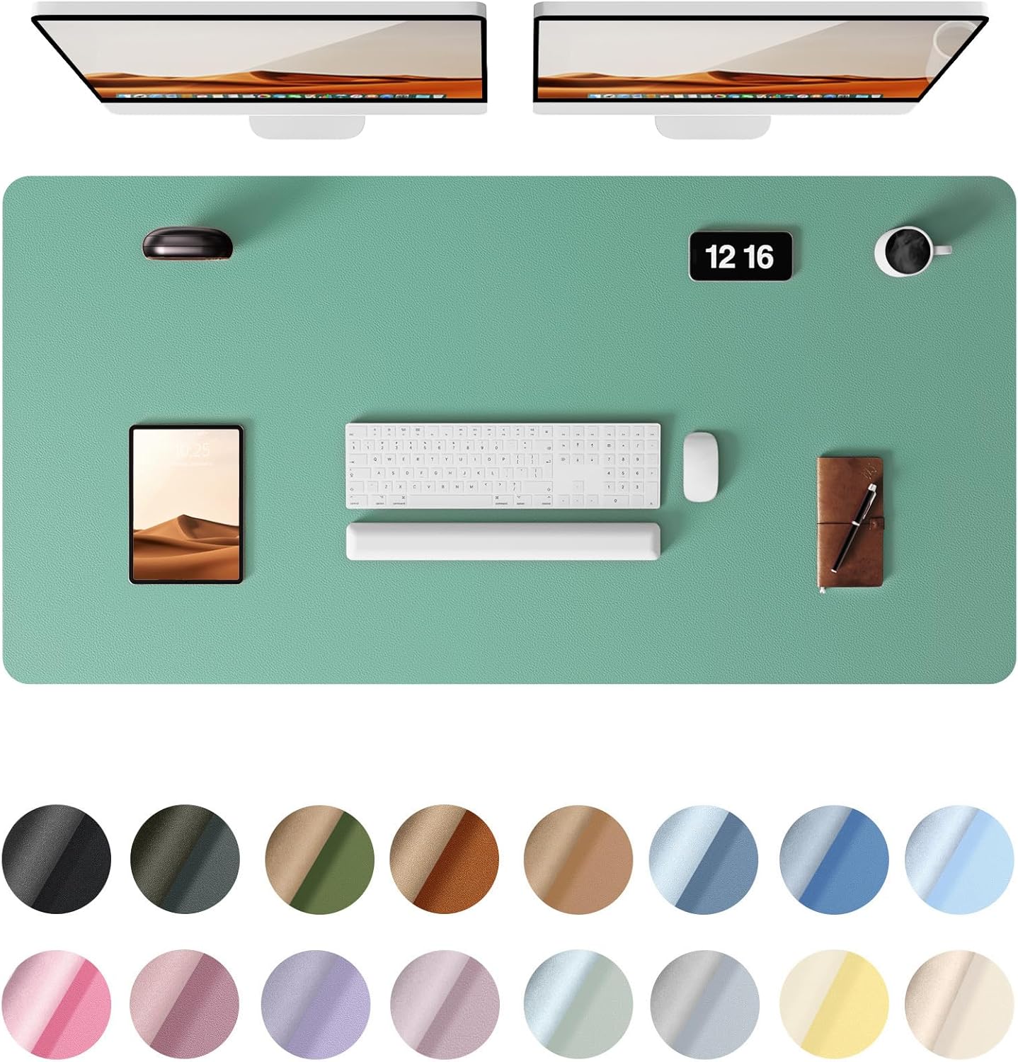 YSAGi Leather Desk Protector, Office Mat, Large Mouse Mat, Non-Slip PU Leather Blotter, Laptop Desk Pad, Waterproof Writing Pad for Office and Home (Green-Blue, 47.2" x 23.6")