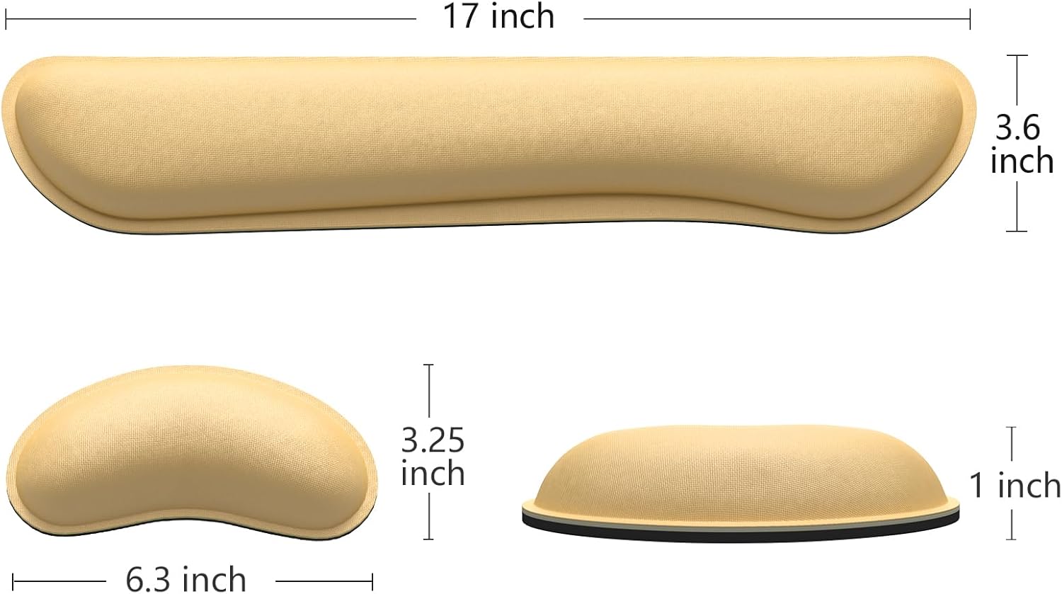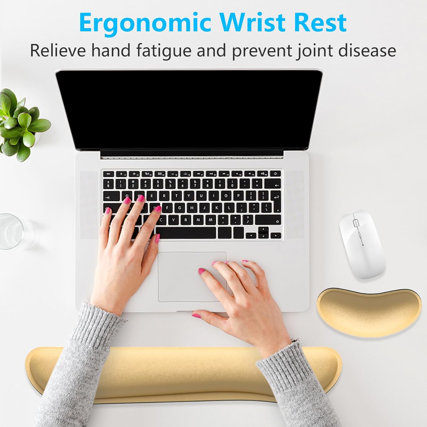 - Memory Foam Wrist Support:Memory foam inside the keyboard and mouse wrist rest keeps your wrists lifted and supported in a comfortable way. get full support to distribute pressure and put angled up wrists naturally