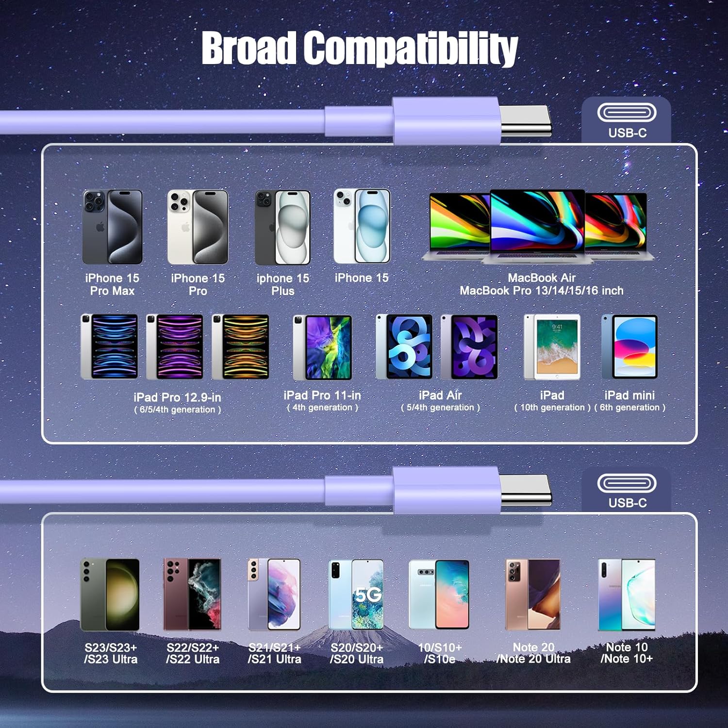 - 【Universal Compatibility】This C to C fast charging cable Compatible with 65W/61W/45W/35W/30W/25W/22.5W/20W/18W/15W/12W/5W All USB C charger.for iPhone 16 15 Pro Plus Pro Max,for MacBook Pro 13 inch, for Macbook Air 13 /m1 Inch, for MacBook 12 inch,for iPad Pro 12.9/11 inch, for iPad Air 4/5, for iPad Mini 6, for Google Pixel 6/6 Pro/5/5a, for Galaxy S24/S23/S22/S21/S20/S20+/S20 Ultra, for Galaxy A53/A73/A71,for Galaxy Note 10/10+/20 Ultra, for Switch, for PS5 and other USB-C port devices.