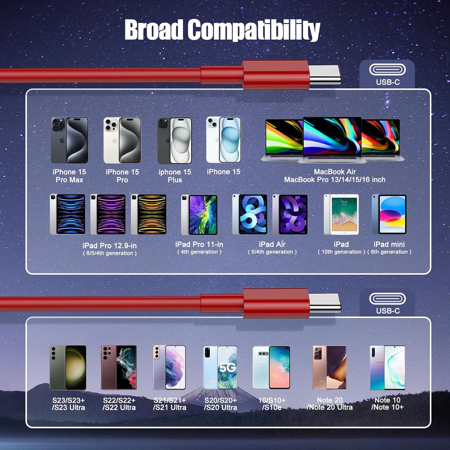 - 【Universal Compatibility】This C to C fast charging cable Compatible with 65W/61W/45W/35W/30W/25W/22.5W/20W/18W/15W/12W/5W All USB C charger.for iPhone 16 15 Pro Plus Pro Max,for MacBook Pro 13 inch, for Macbook Air 13 /m1 Inch, for MacBook 12 inch,for iPad Pro 12.9/11 inch, for iPad Air 4/5, for iPad Mini 6, for Google Pixel 6/6 Pro/5/5a, for Galaxy S24/S23/S22/S21/S20/S20+/S20 Ultra, for Galaxy A53/A73/A71,for Galaxy Note 10/10+/20 Ultra, for Switch, for PS5 and other USB-C port devices.