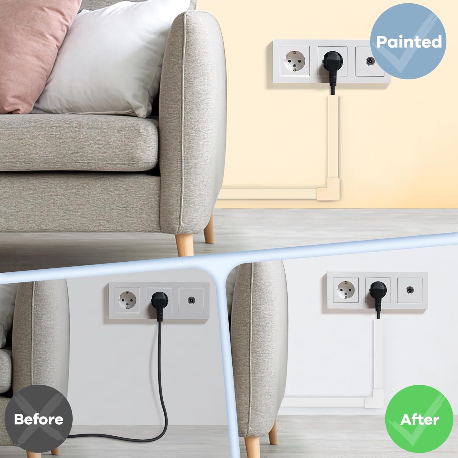 - Cuttable and Paintable Cord Concealer: Made of high-quality PVC material, our cable channels can be easily cut to your desired length using a knife or hacksaw. You can also paint the cable cover to match your wall color, providing a seamless and customized look