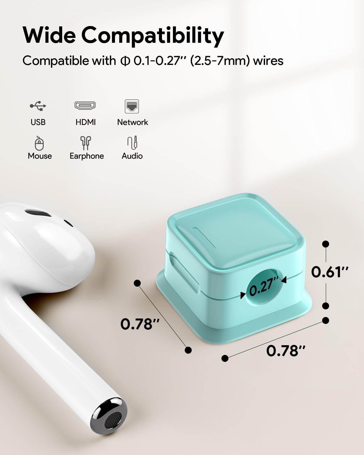 - Hold Most Wires: Diameter of about 0.3in allows to hold most cords, such as Type-C charger cords, lightning cords, HDMI cords, USB cables, computer power wires, network wires, mouse cords, keyboard cables, headphone cords