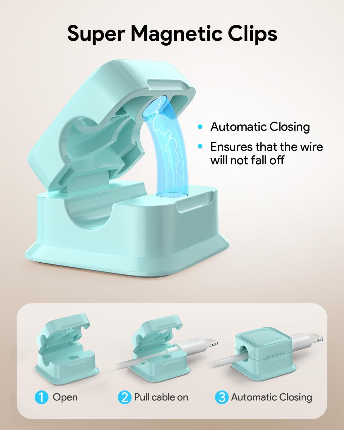 - Magnetic Locking & No Falling Off: Secure magnetic grasp opening and closing allow easy cord in,and powerful magnetic lock the organizer firmly to hold any charging head without falling off, more convenient to pull the cables out for smoothly using