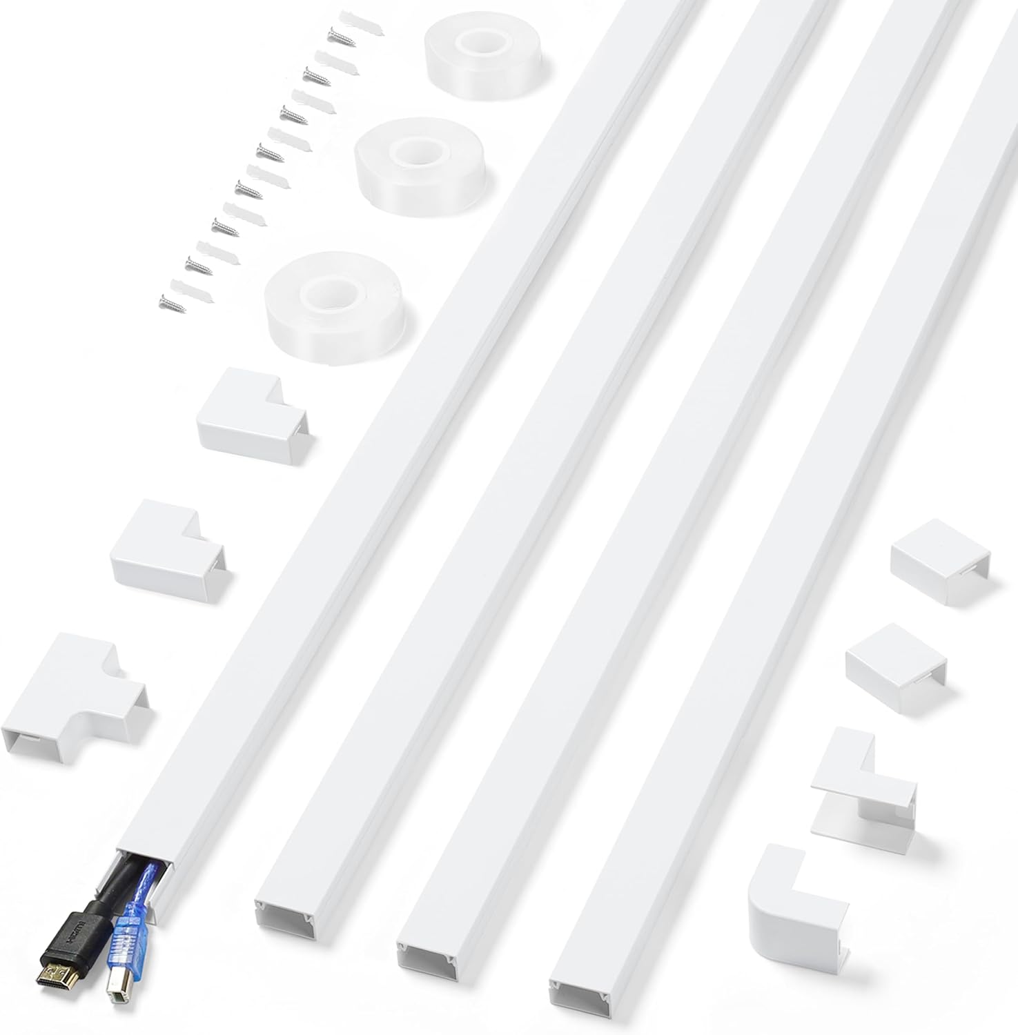 Cord Covers for Wires on Wall Extra-Long, 13.12ft TV Cord Hider Kit, Paintable Cable Management Concealer, White Cord Raceway Channel, 4 x L39in x W0.95in x H0.55in