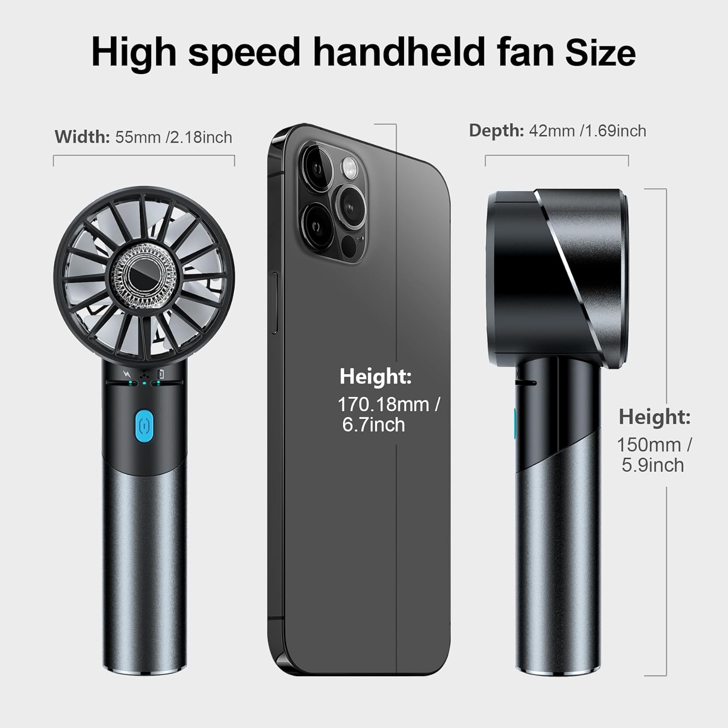 - COMPACT AND LIGHTWEIGHT DESIGN: handheld fan measures only 5.82 inches in height and weighs just 0.36 pounds, which makes it extremely compact and lightweight. Put it in your bag or backpack and carry it anywhere - perfect for travel, outdoor activities, office use and much more.