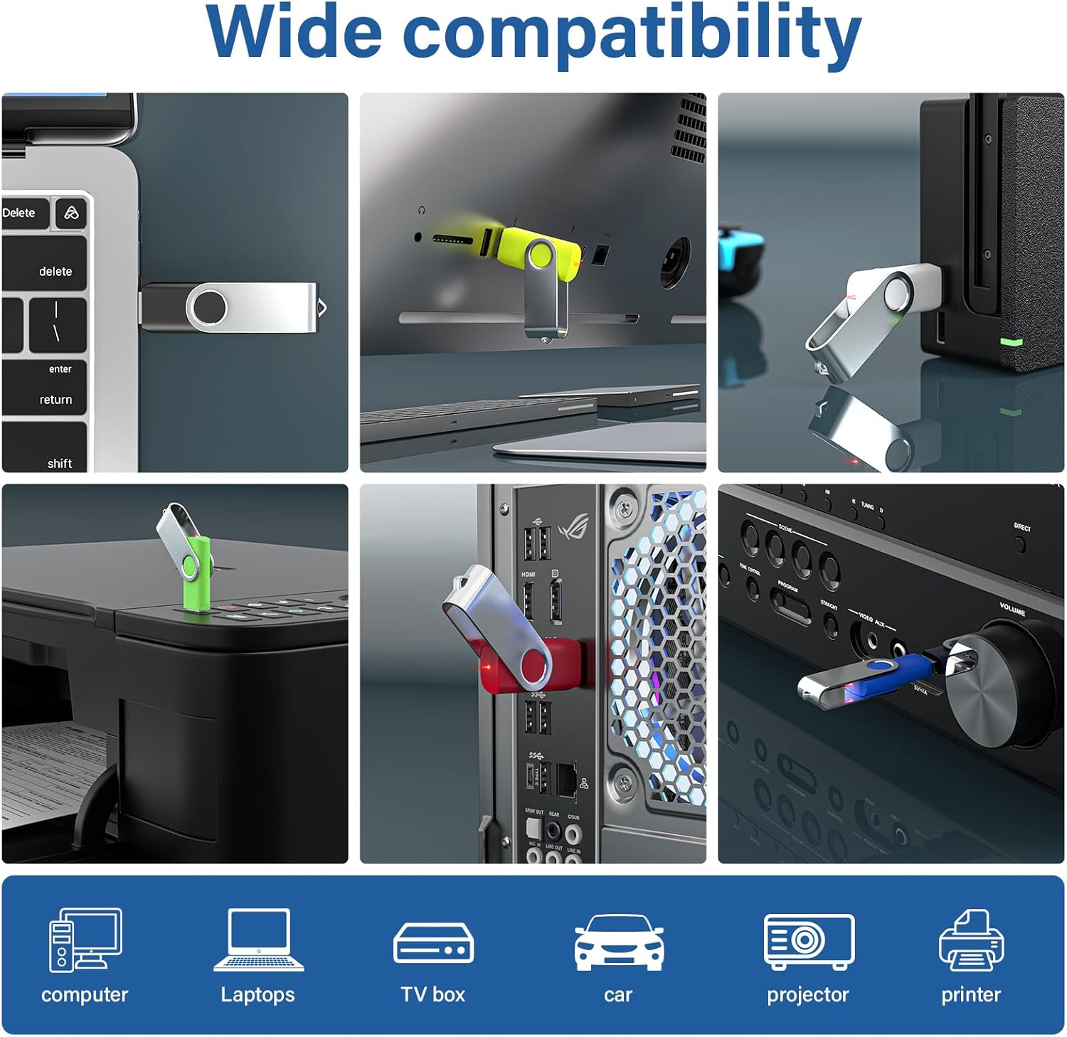 - Versatile Storage Set: Get 20 packs of 2GB USB flash drives and keychains for easy storage and transfer of music, videos, photos, documents, and more