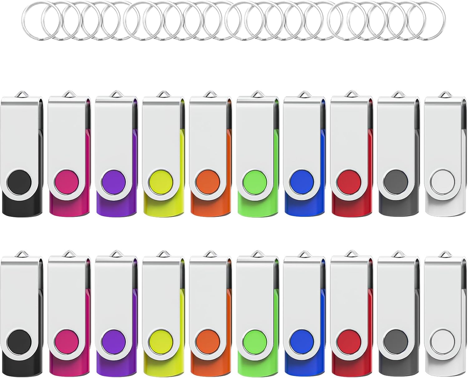 - Versatile Storage Set: Get 20 packs of 4GB USB flash drives and keychains for easy storage and transfer of music, videos, photos, documents, and more