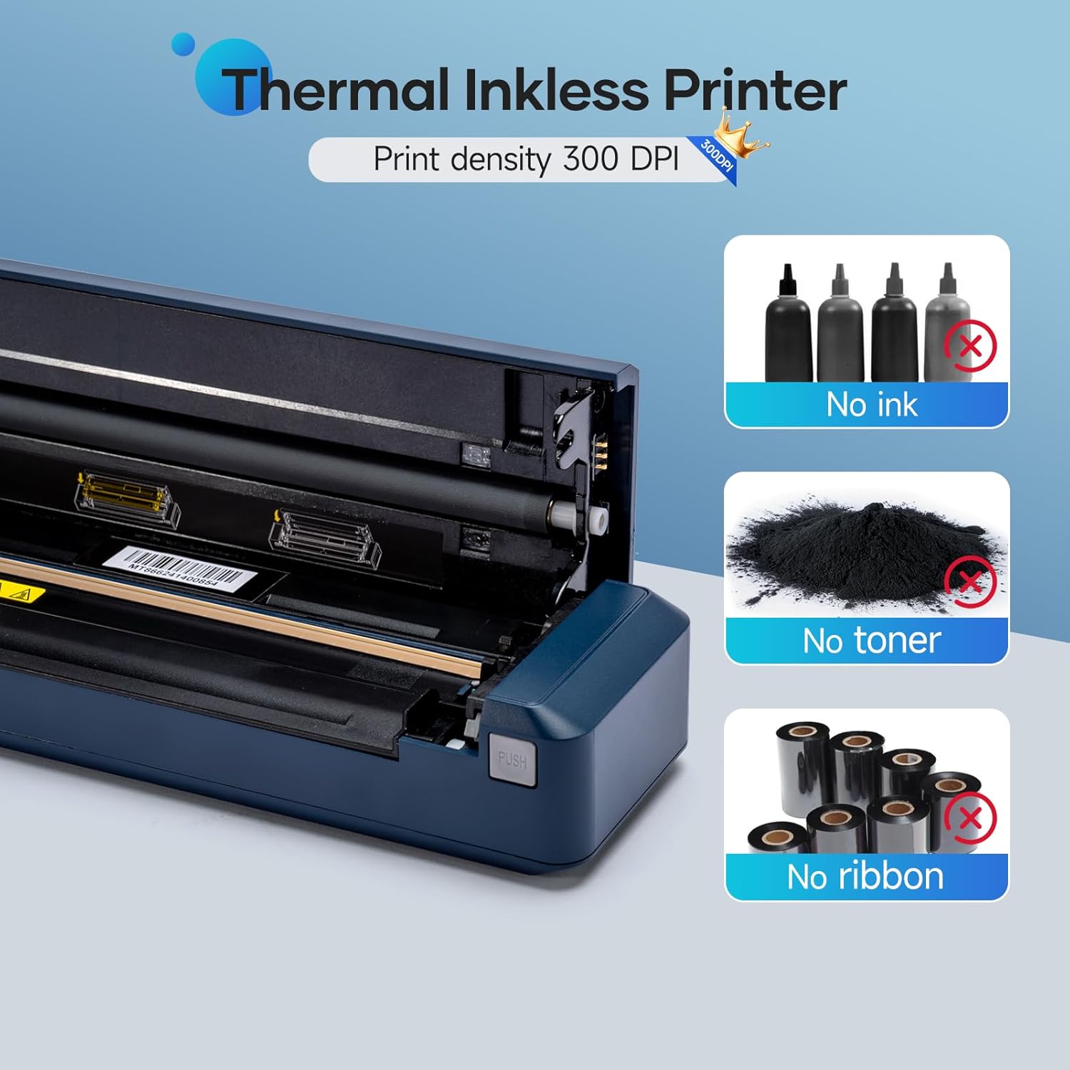 iDPRT Portable-Printer Wireless for Travel, 300DPI Inkless Thermal Small Printers for Home Use, Office, Vehicles, Mobile Bluetooth Printer Supports 8.5" x 11" US Letter, for Smartphone & PC,Blue