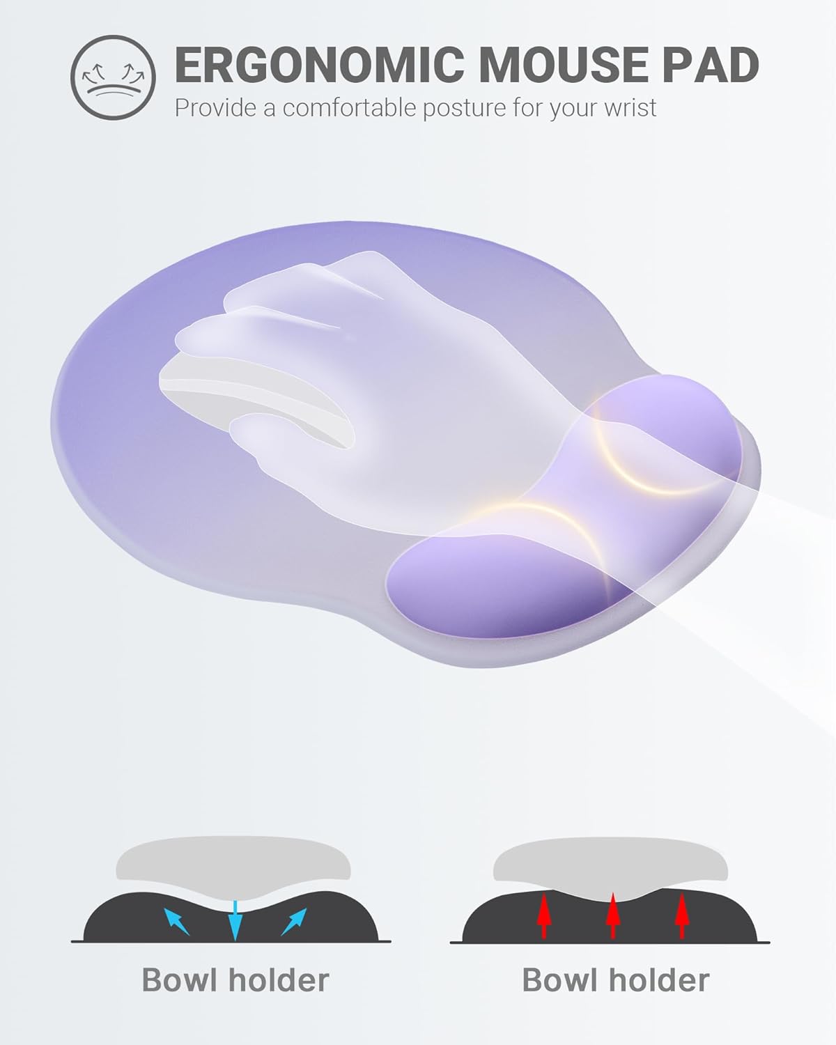 Ergonomic Mouse Pad Wrist Support, Comfortable Mouse Pad Wrist Rest, Relieve Wrist Pain Gel Mouse pad, Non-Slip Rubber Base Mousepad for Laptop, Computer(Gradient Dark Purple)