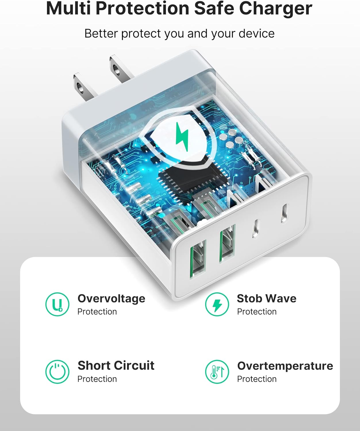 - 【Universal Compatibility】:Due to the special 4-port,the USB charger is compatible with almost all electronic devices,charging adapter for iPhone 15/15 Pro/15 Pro Max/15 Plus/14/14 Pro/14 Pro Max/13/13 Mini/13 Pro Max/12/12 Pro Max/12 Pro Max/12 Mini/SE/11/11 Pro/11 Pro Max/XR/XS/X/8/7,iPad Air/Pro/Mini,Samsung Galaxy S24/S23/S22/S21/S20/S10/S9/S8,Samsung A12/A13/A22/A32/A52/A53/A71/Note 20 10,Tablets,LG,Google Pixel and other digital devices compatible