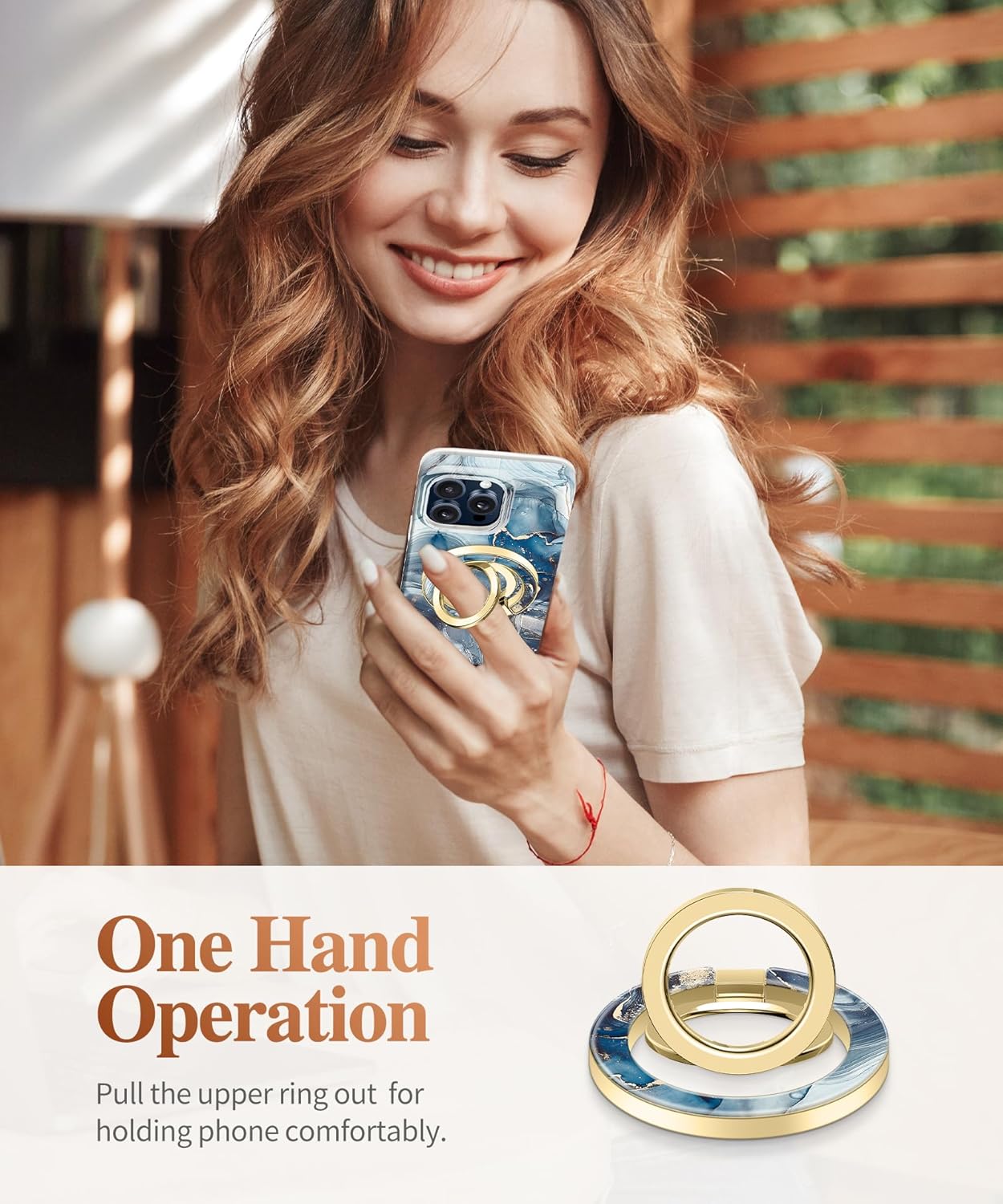 - [Premium & Comfortable Grip] The cell phone stand is made of high-quality zinc alloy metal material with electroplated coating that offers ultra-durability and unfading colors. Stylish Marble base adds style to your phone case. This ring is more ergonomically designed for a comfortable and secure grip. Perfectly adapted to various occasions of one-handed use, avoid phone drops.