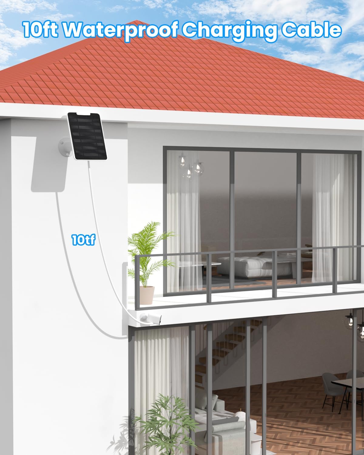 - 【Easy Installation & Adjustable Wall Mount】Our solar chargers are equipped with 360° rotation adjustable secure wall mount & extra-long 10FT/3M charging cable, which allows you to easily position your solar panel to capture the maximum sunlight exposure in different seasons.