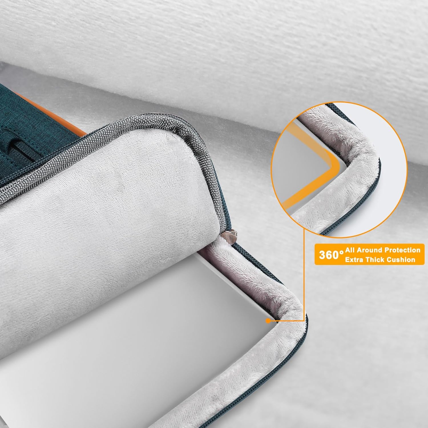 - 360 degree all around protective reinforced interior edge protect your laptop from any accidental dropping. Features foam padding layer and fluffy fleece fabric lining for bump and shock absorption and protection of your computer from accidental scratches. Side opening double zippers on the bag glide smoothly and allows convenient access to your laptop computer.