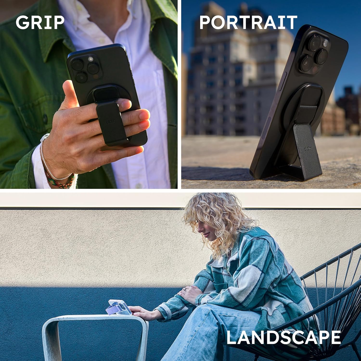 - 【STRONGER MAGNETIC GRIP】The magsafe mobile phone grip with stand is 3 times stronger than the average magnet grip. CLCKR compact grip and kickstand remains firmly in place with powerful magnetic adhesion to your devices to secure the cell phone loop stand to your phone and easily detach when not needed.