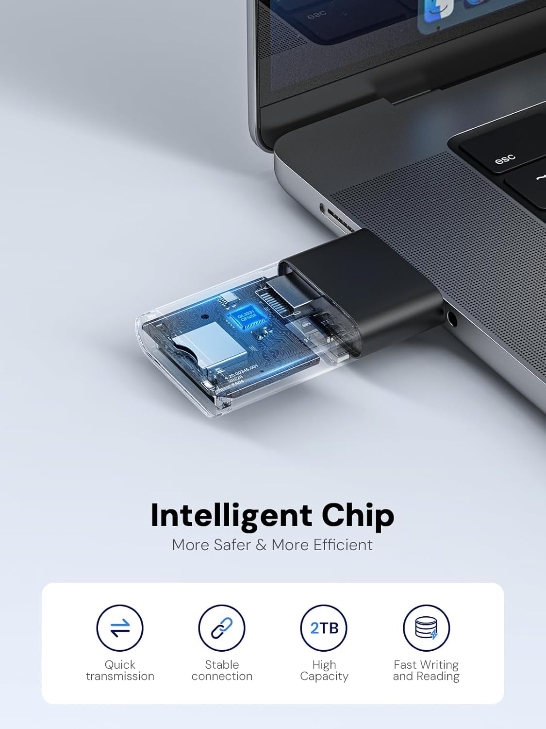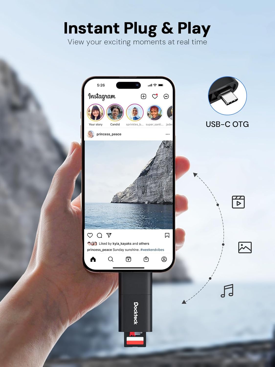 - [Support OTG for Plug& Play] Dockteck SD card reader support OTG( On-the- Go) function could directly connect your phones and ipad to external devices such as USB drives, card readers, keyboards, mice, digital cameras, etc. to perform data transmission, output operations, or charging functions