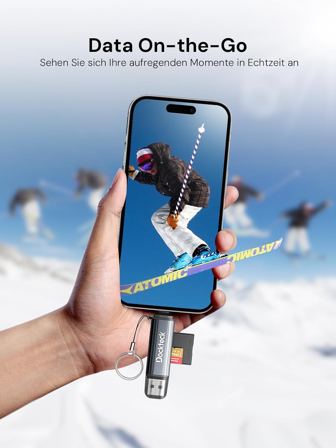 - 【Wide Compatibility】: Dockteck SD card reader USB C for iPhone 15 Sereis, laptops, tablets, smart phone with USB-C port, such as MacBook Pro, MacBook Air, iPad Pro 2021/ 2020/ 2018, iPad Air 4, Galaxy S 23 /S22/ S21/ S20/ S10/ S9/ Note 10, Redmi Note 10 Pro/ Note 9/ Note 8, Surface Pro, Surface Book,P50/ P40/ P30/ P20, and USB A devices such as PC, Car, PS5, PS4, Xbox One