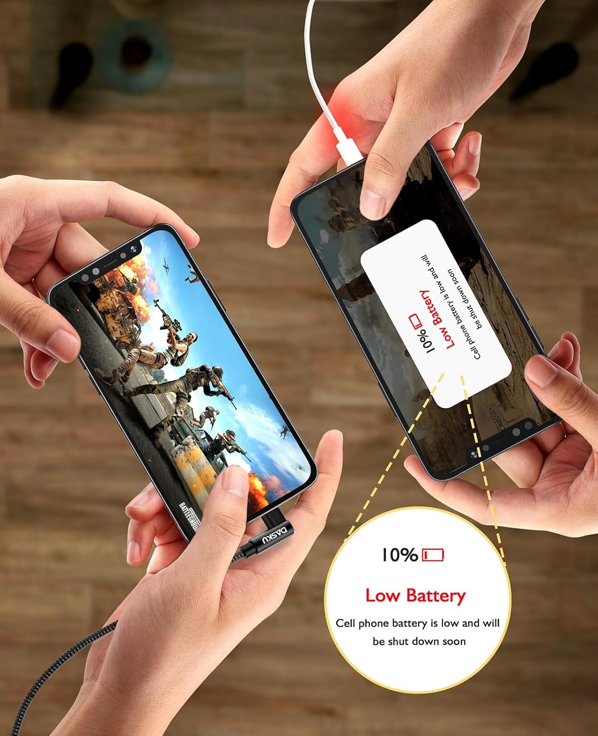- 【90 Degree Right Angle Design】Special right angle design not only give you great convenience of playing games, increase winning probability, but also easier to watching movies or videos when charging. What's more, you do not worry bending and fraying the cable joints so that prolong its service life.