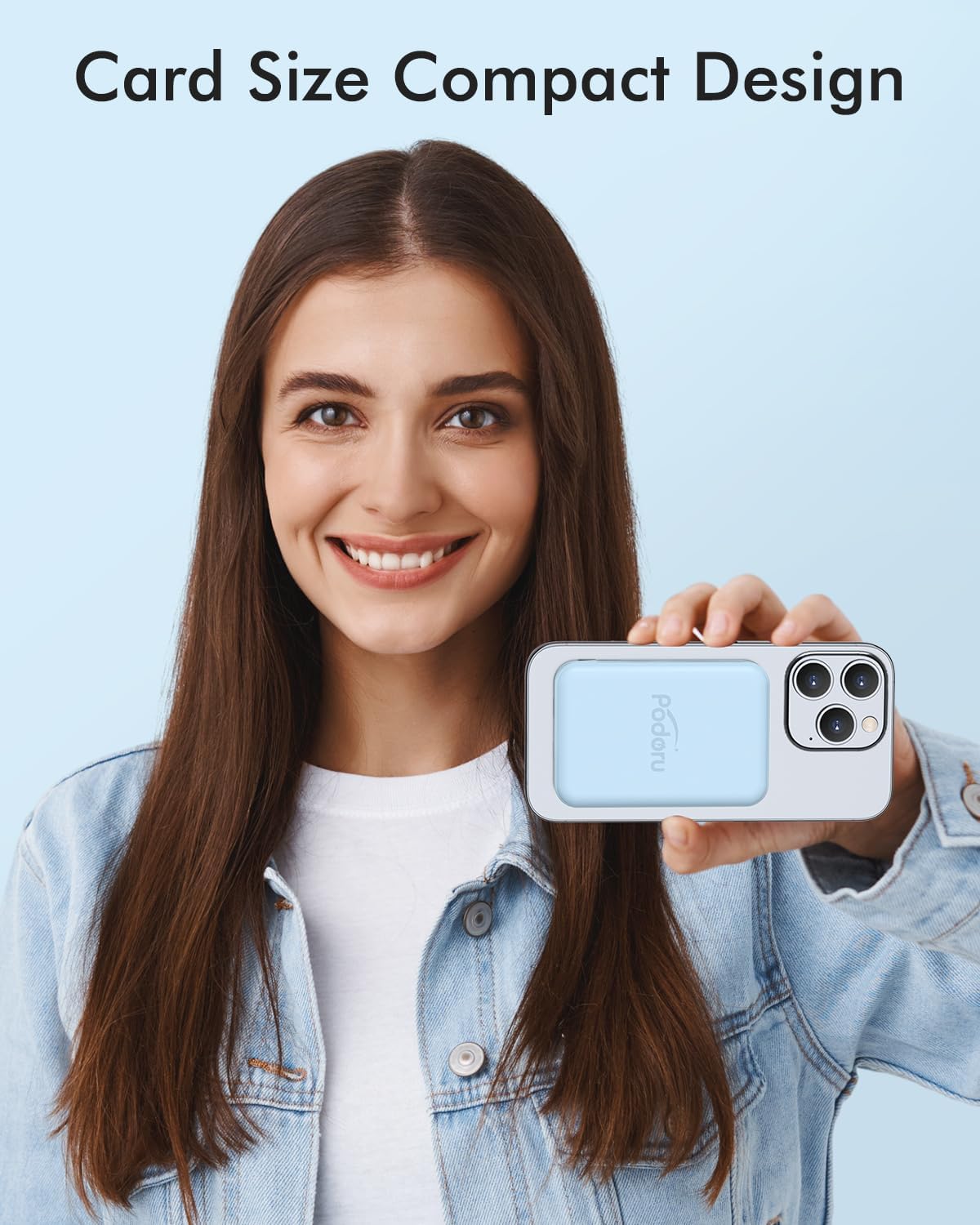 podoru for Magsafe Battery Pack, 5000mAh Magnetic Power Bank with Type-C Cable 20W PD Fast Charging Lighting Input Wireless Portable Charger for iPhone 16/15/14/13/12/ All Series-Sierra Blue