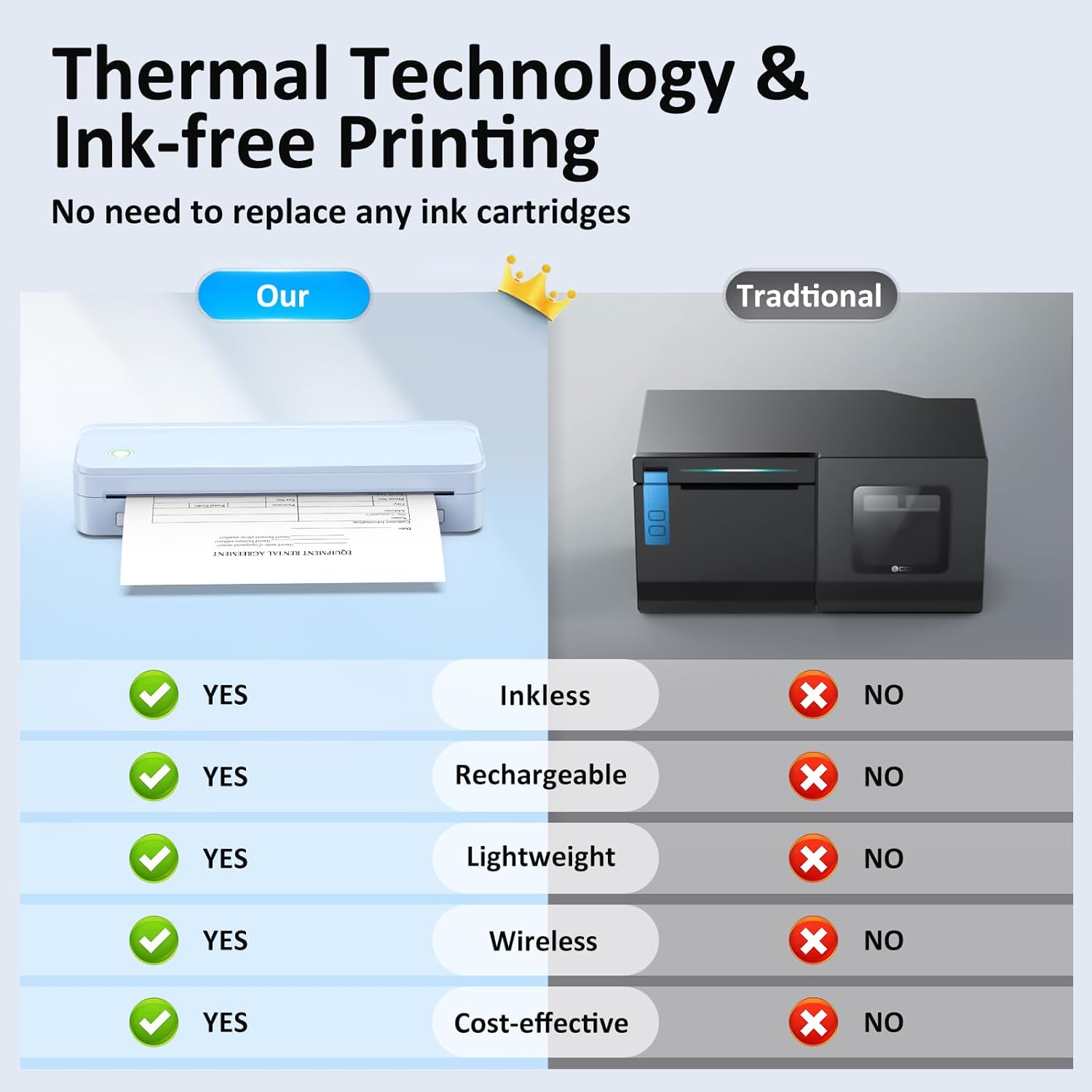 - Inkless Printing - Gloryang mobile printer delivers cost-effective and Inkless solutions for everyday printing. Utilizing advanced thermal technology eliminates the need for ink, toner, and ribbons. The package includes a printer, 3 rolls of thermal printing paper, a carrying case, a charging cable, instruction manual, and a guide card, etc. It is the most cost-effective choice. Only compatible with Gloryang thermal paper, not inkjet paper!!