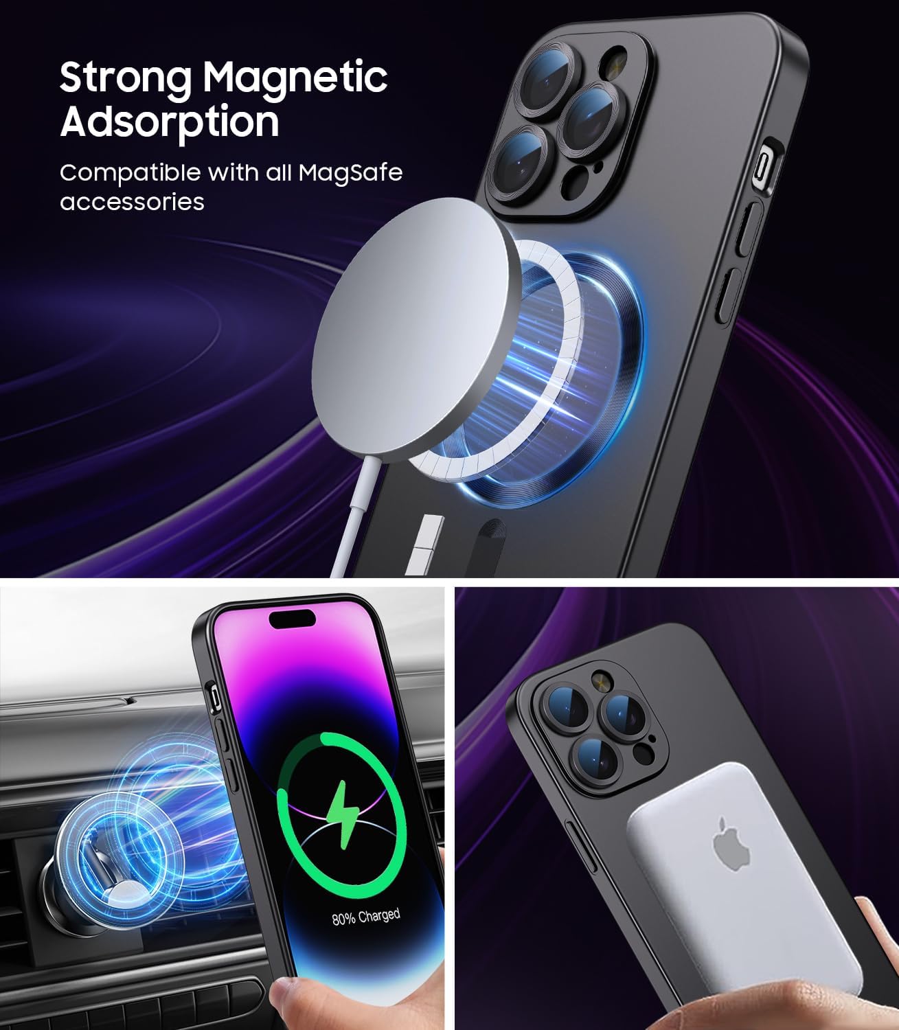 - 【Compatible with MagSafe】Equipped with 38 strong N52SH magnets, this iPhone 14 Pro Max magnetic case compatible with MagSafe accessories such as car phone holder, wireless charger, and stand
