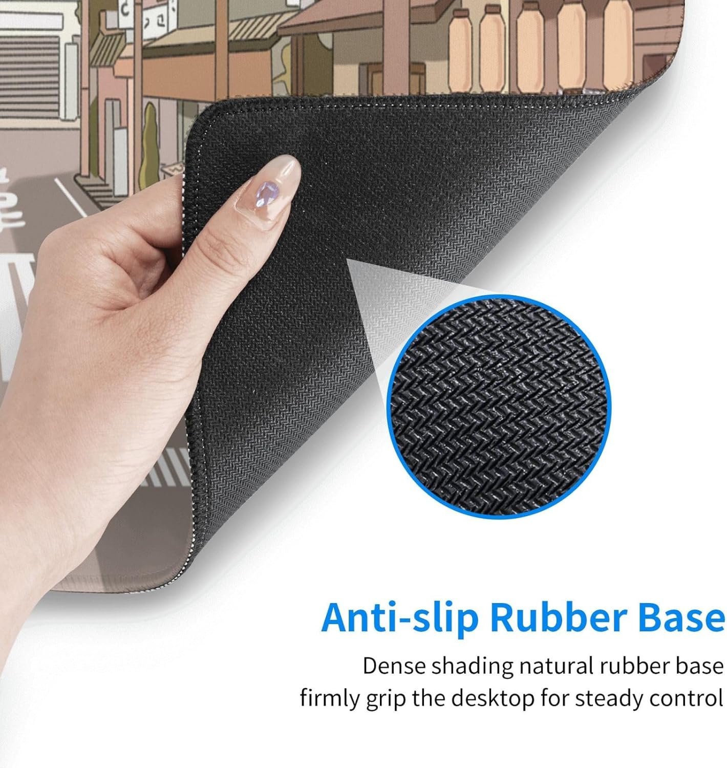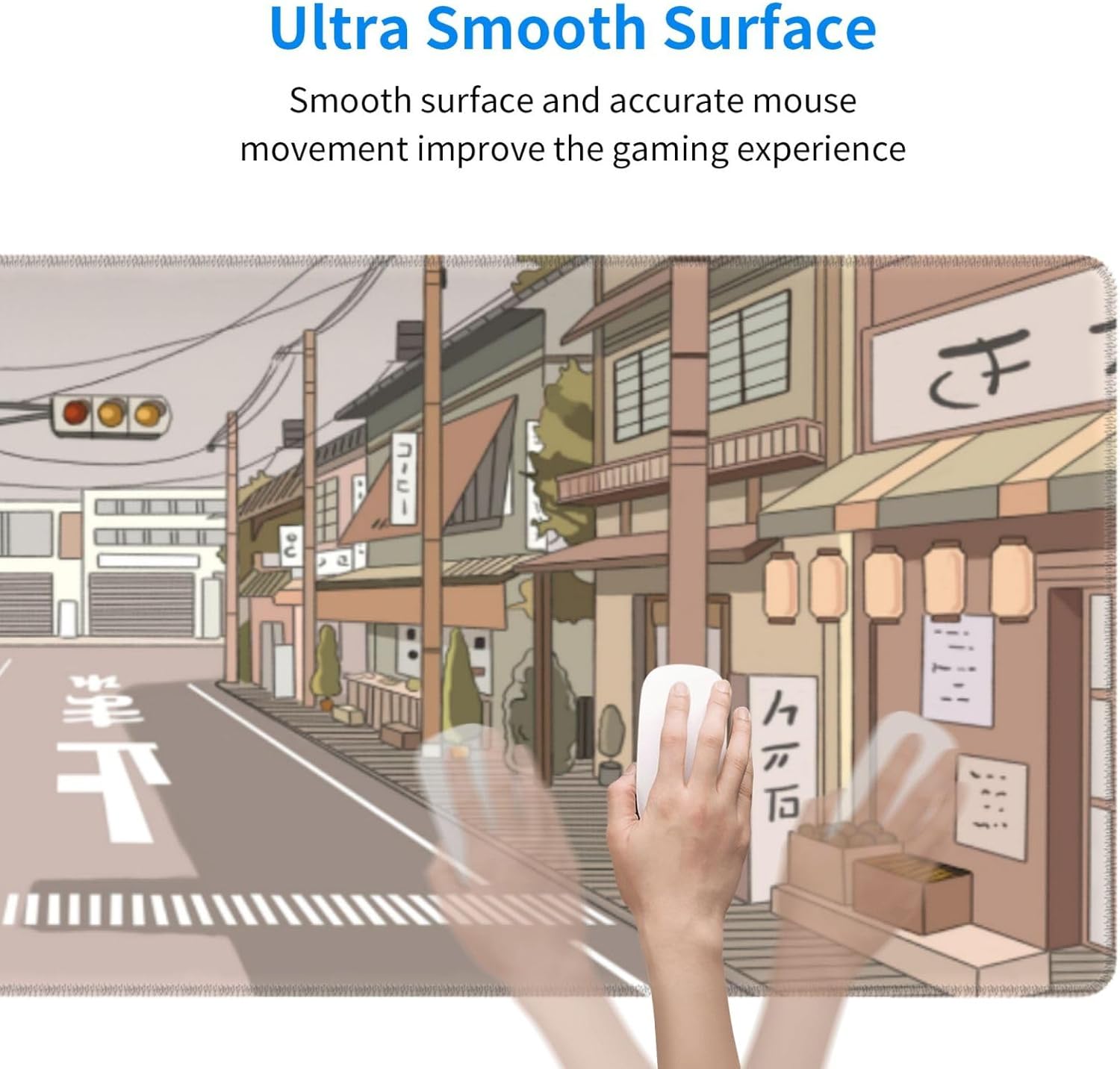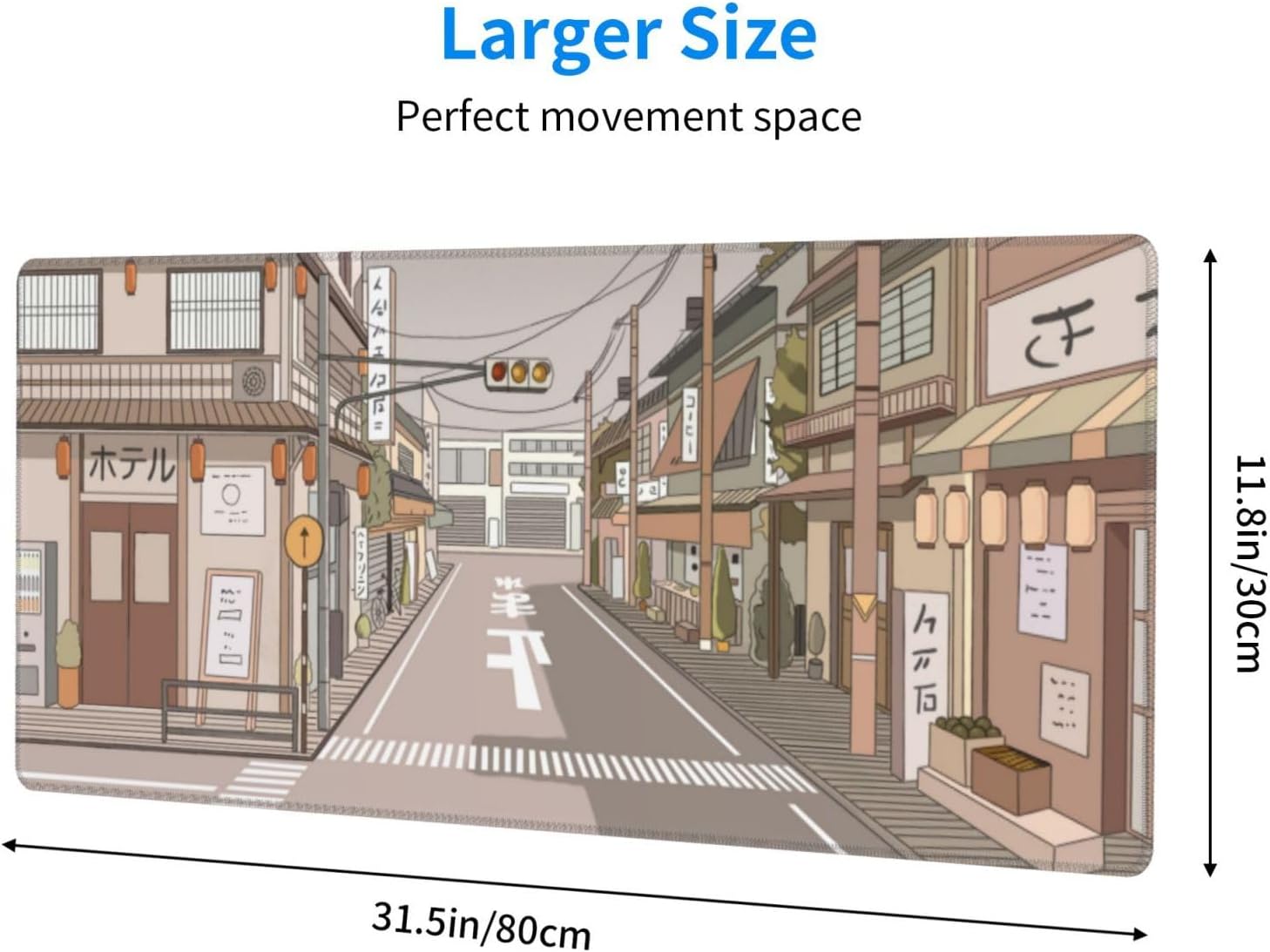 Tokyo Street Anime Kawaii Large Gaming Mousepad XXL Beige Cute Desktop Laptop Keyboard Mouse Mat Desk Pad Big 31.5''x15.7'' with Stitched Edges Non-Slip Rubber Base