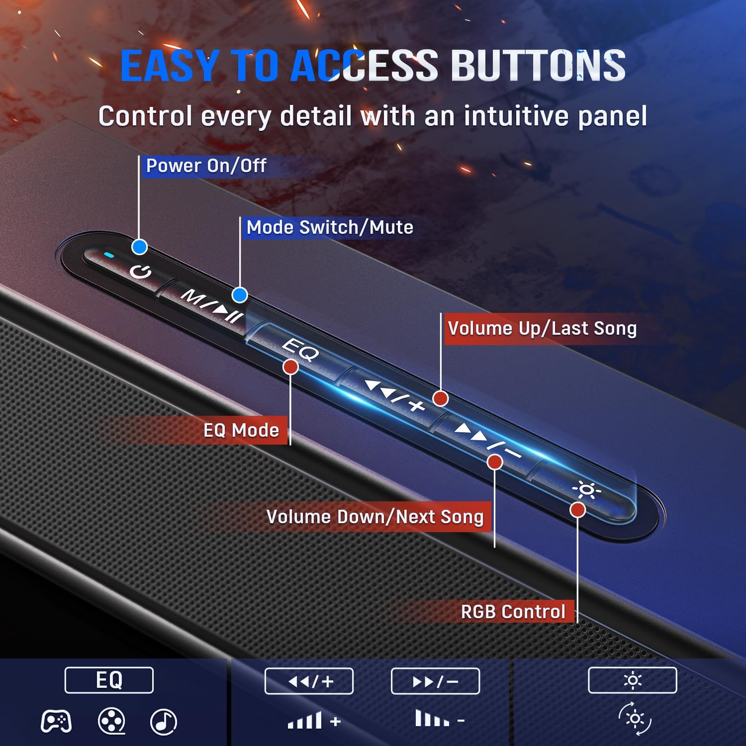 - [Convenient Function Key] You have easy access to essential controls via the desk speakers, including volume adjustment, EQ mode, and music playback switch. This intuitive function allows for quick settings without disrupting gameplay, ensuring that the focus remains on the action.