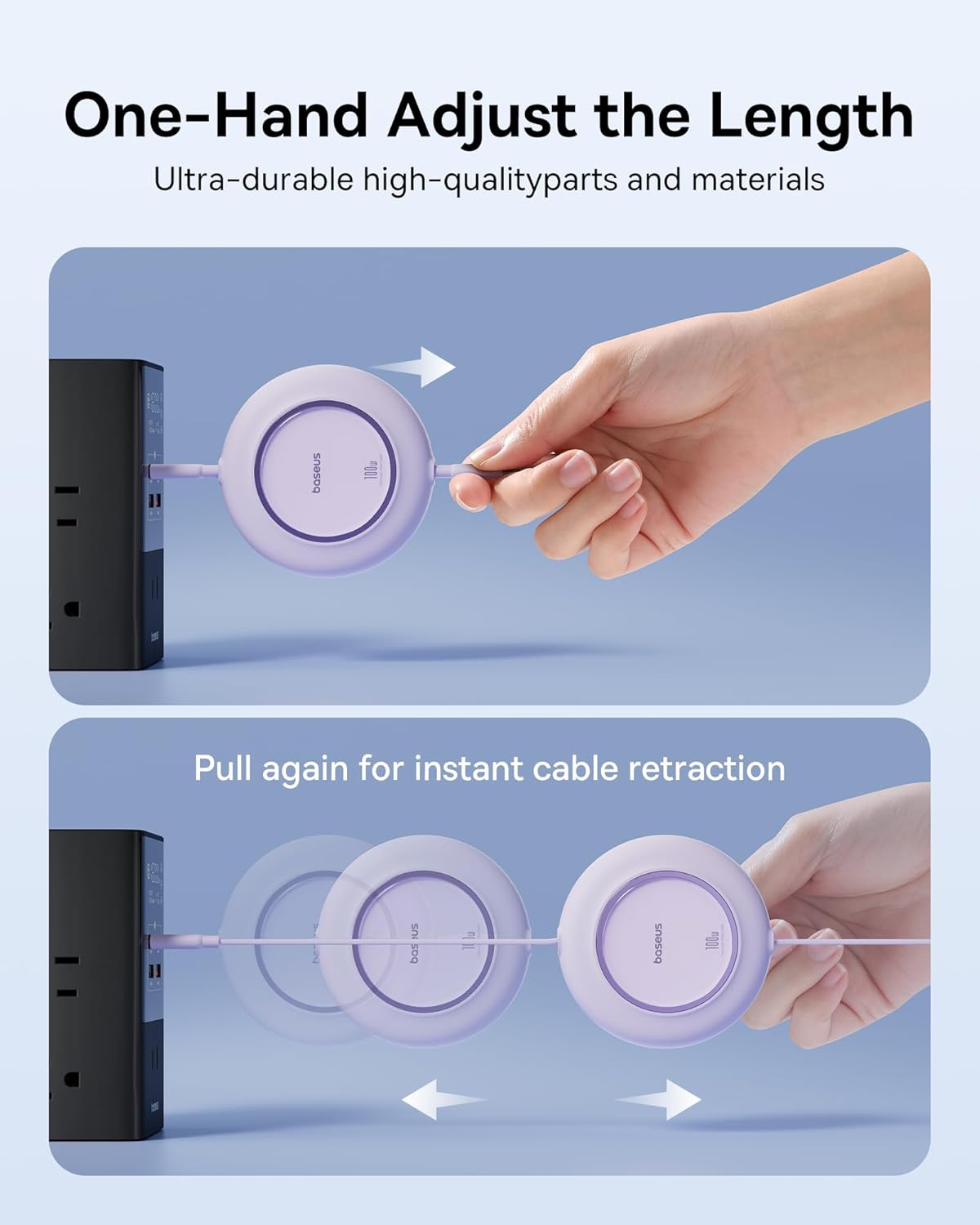 Baseus USB C to USB C Cable, 100W 6.6ft Retractable USB C Fast Charging Cable, 7-Stage Length Preset Retractable Charger Cord for iPhone 16 15 Pro Plus Pro Max, MacBook, iPad Pro, Samsung S24/S23+