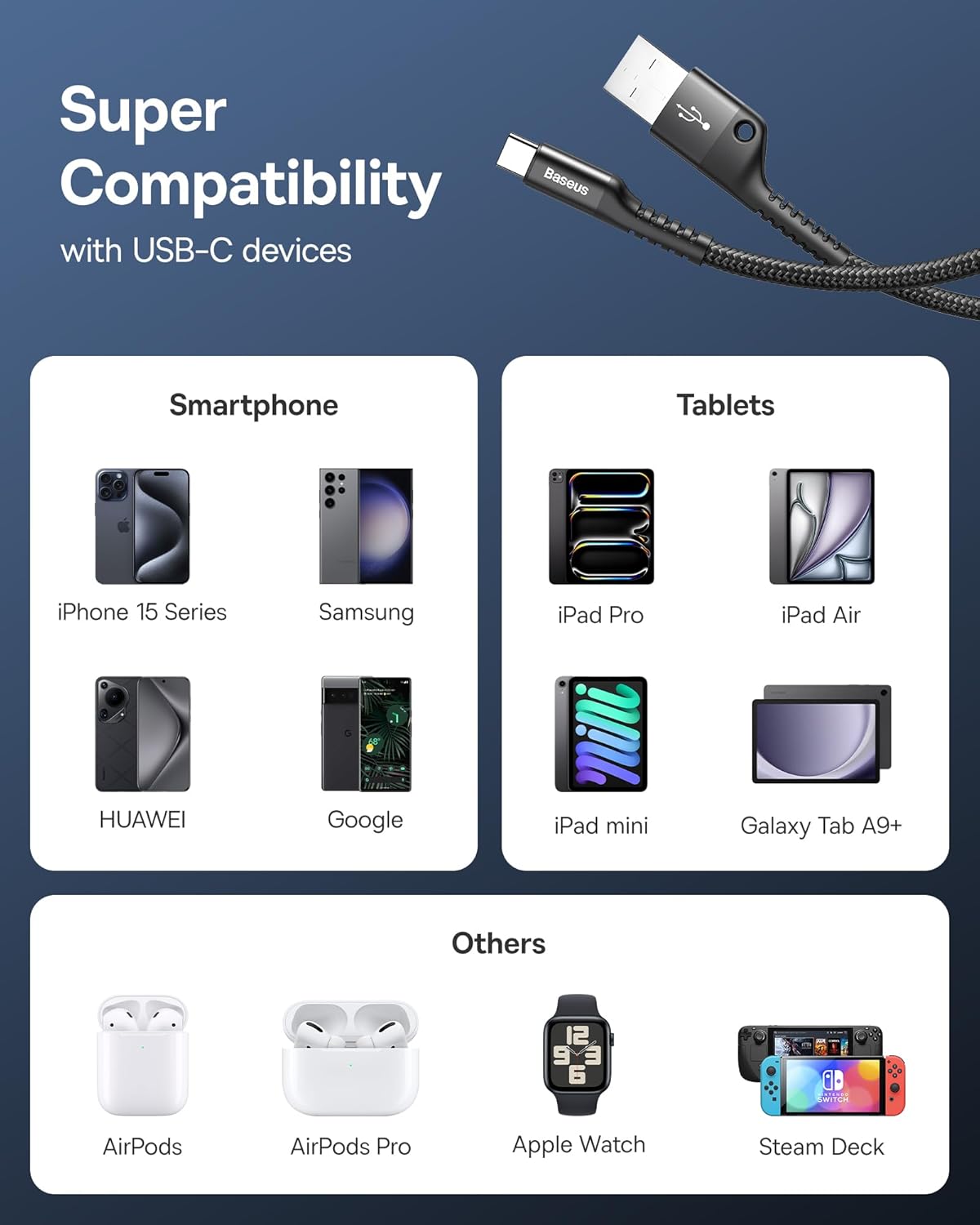 - Durable Quality - Encased with high-quality nylon braided cord and high-grade electroplating aluminum alloy case, strong and durable, long life. SR reinforced protection and embedded cable, no fear of bending and will not break.