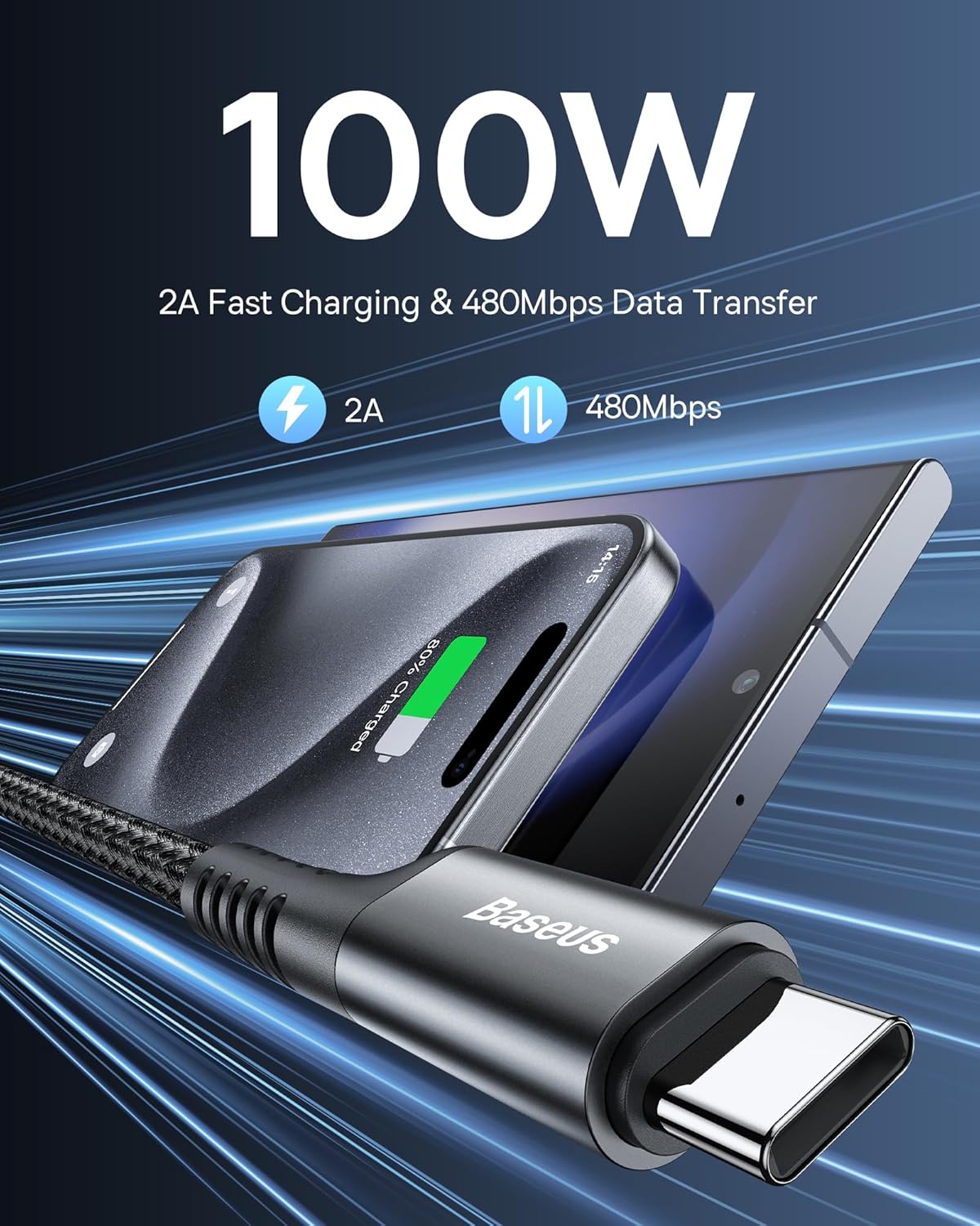 Baseus USB Type C Cable for Car, 2-Pack 3.3ft 100W Retractable Coiled USB A to USB C Fast Charger Cord, Nylon Braided Carplay Cable Compatible with iPhone15/Pro/Plus/Pro Max, Galaxy S24 S23, Note 20