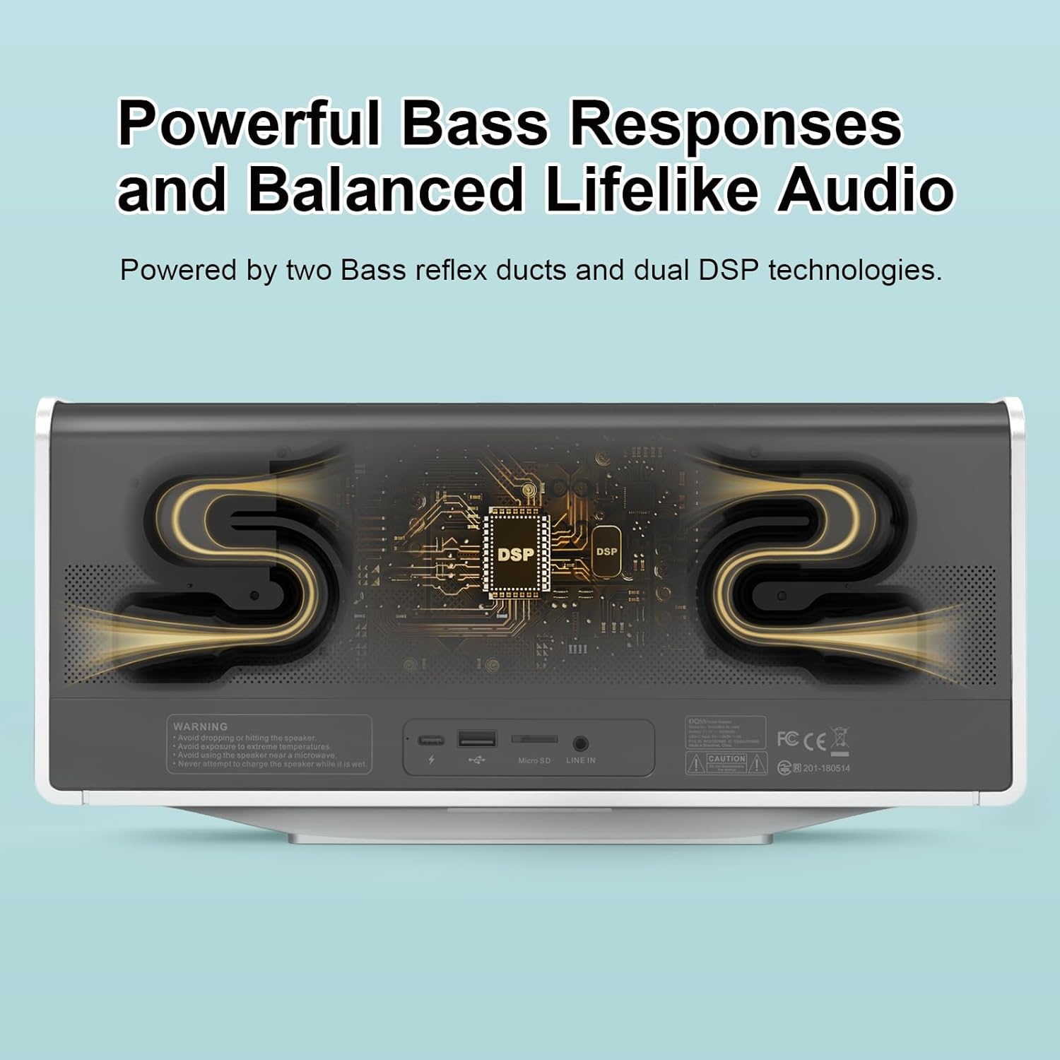 - Loud Clear Sound: The speaker utilizes dual DSP technology to enhance sound quality. It fine-tunes audio for balanced sound, compensating for the speaker box combination, and employs various audio processing algorithms to minimize distortion.