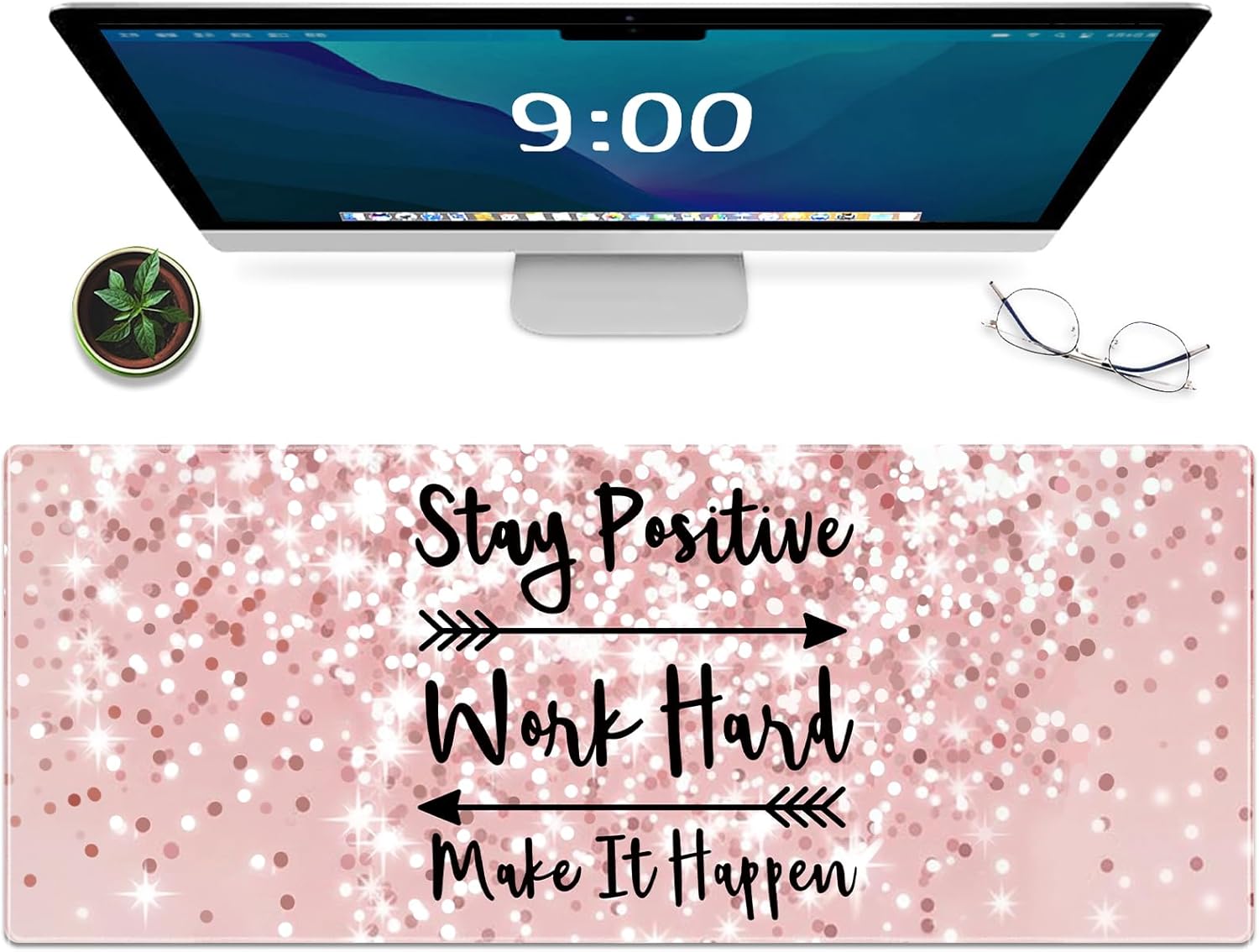 Galdas Gaming Mouse Pad XXL XL Large Long Extended Big Mousepad Non-Slip Rubber Keyboard Mouse Pad with Stitched Edges for Laptop Home Office (31.5x11.8x0.08 Inch) … (Bling Words)
