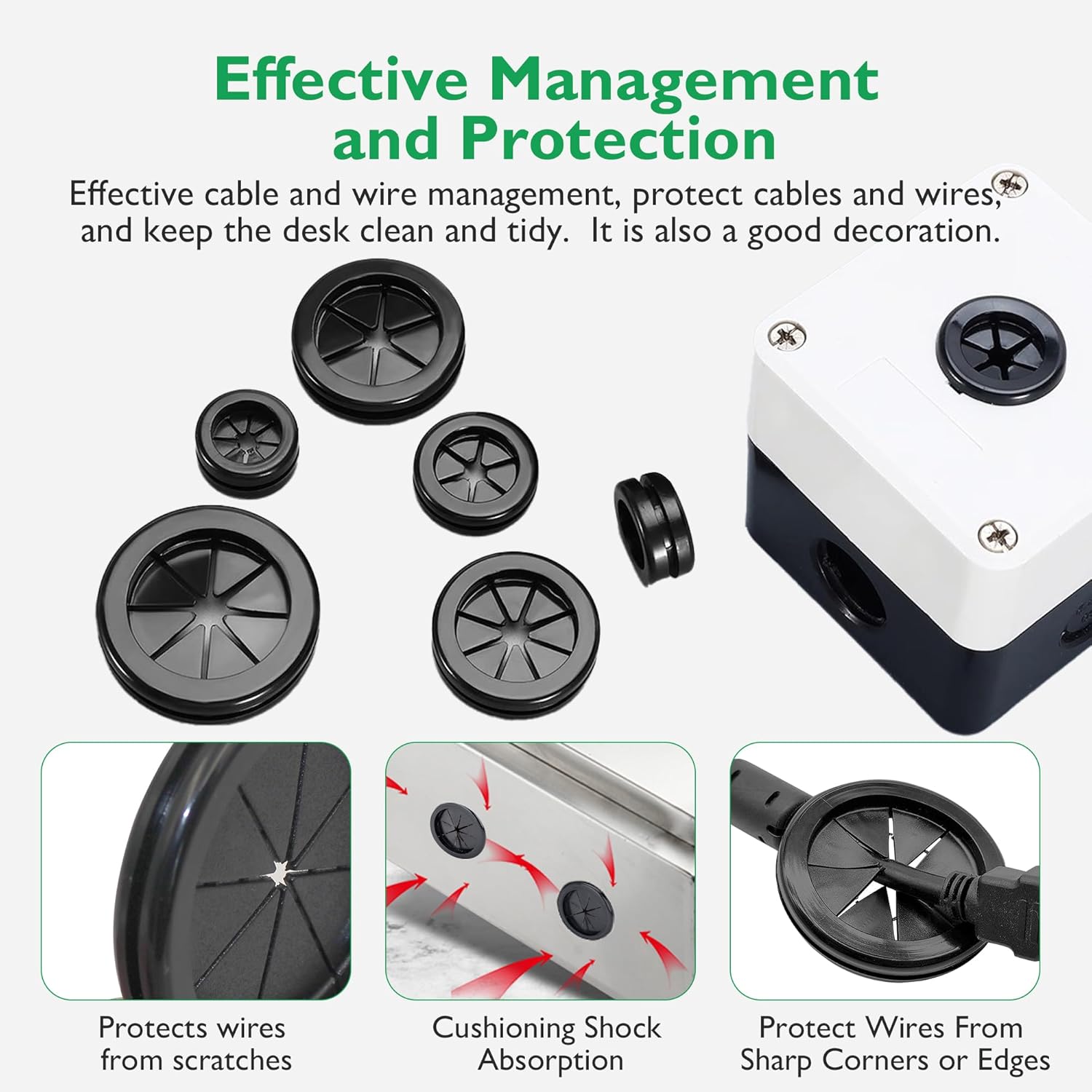 - High-Quality Material: Double-sided wire grommets made of natural flexible synthetic rubber material, strong flexibility, anti-aging, folding resistance, strong insulation protection function; Non-toxic tasteless, comfortable and delicate appearance; Pass the EU RHOS 2.0 test