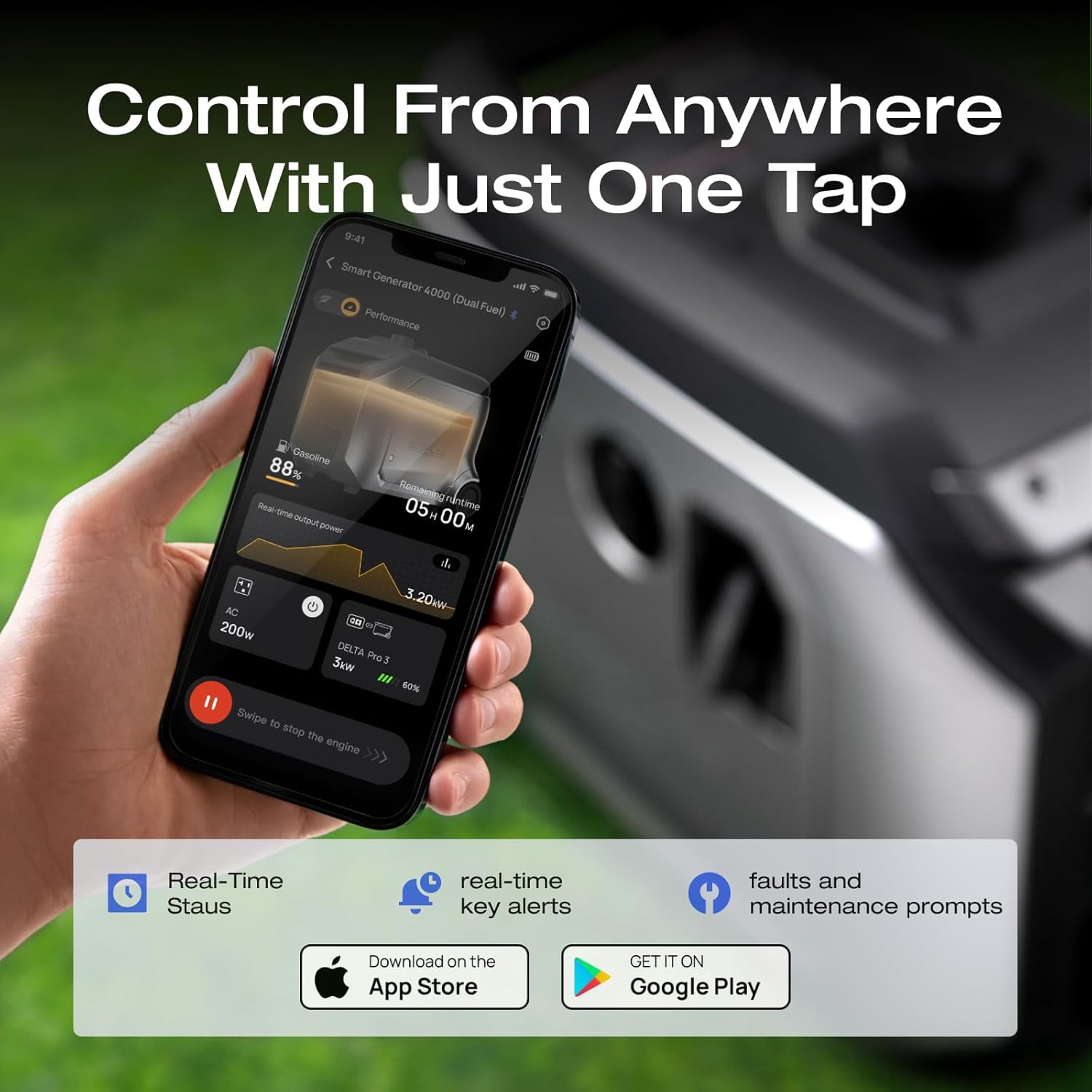 - [Reliability Lasts Longer] Utilize the EcoFlow app for real-time alerts, including CO concentration, high & low-temperature warnings, engine oil alerts, and overload alerts. All features trigger automatic shutdowns for enhanced safety (excluding fuel alerts). Enjoy a longer 3-year warranty period for peace of mind in both use and purchase.