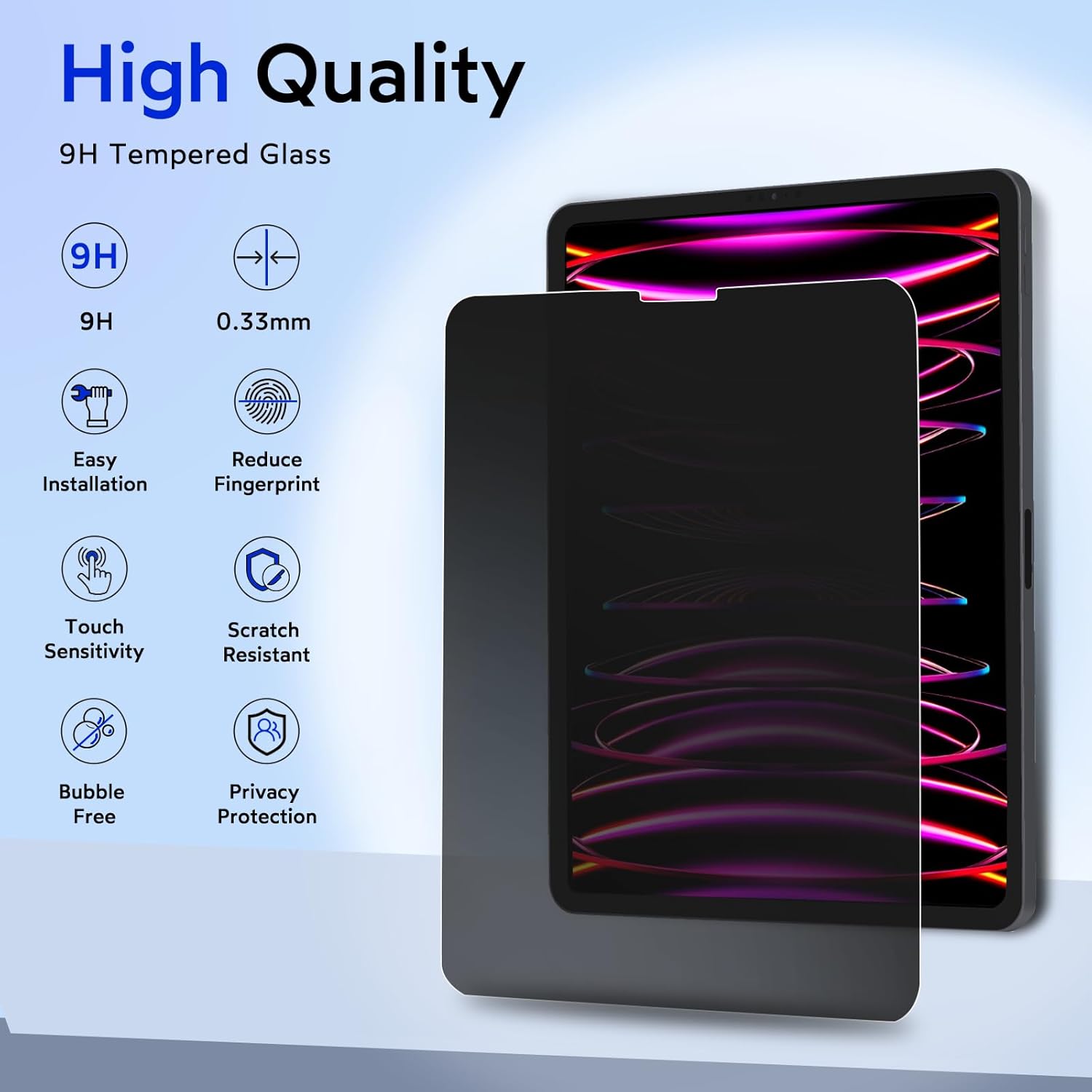 MOBDIK Privacy Screen Protector Compatible with iPad Pro 11 Inch (2022&2021&2020&2018) & iPad Air 5th / 4th Generation (2022&2020), Anti Spy, 9H Tempered Glass, EZ Kit 1 Pack