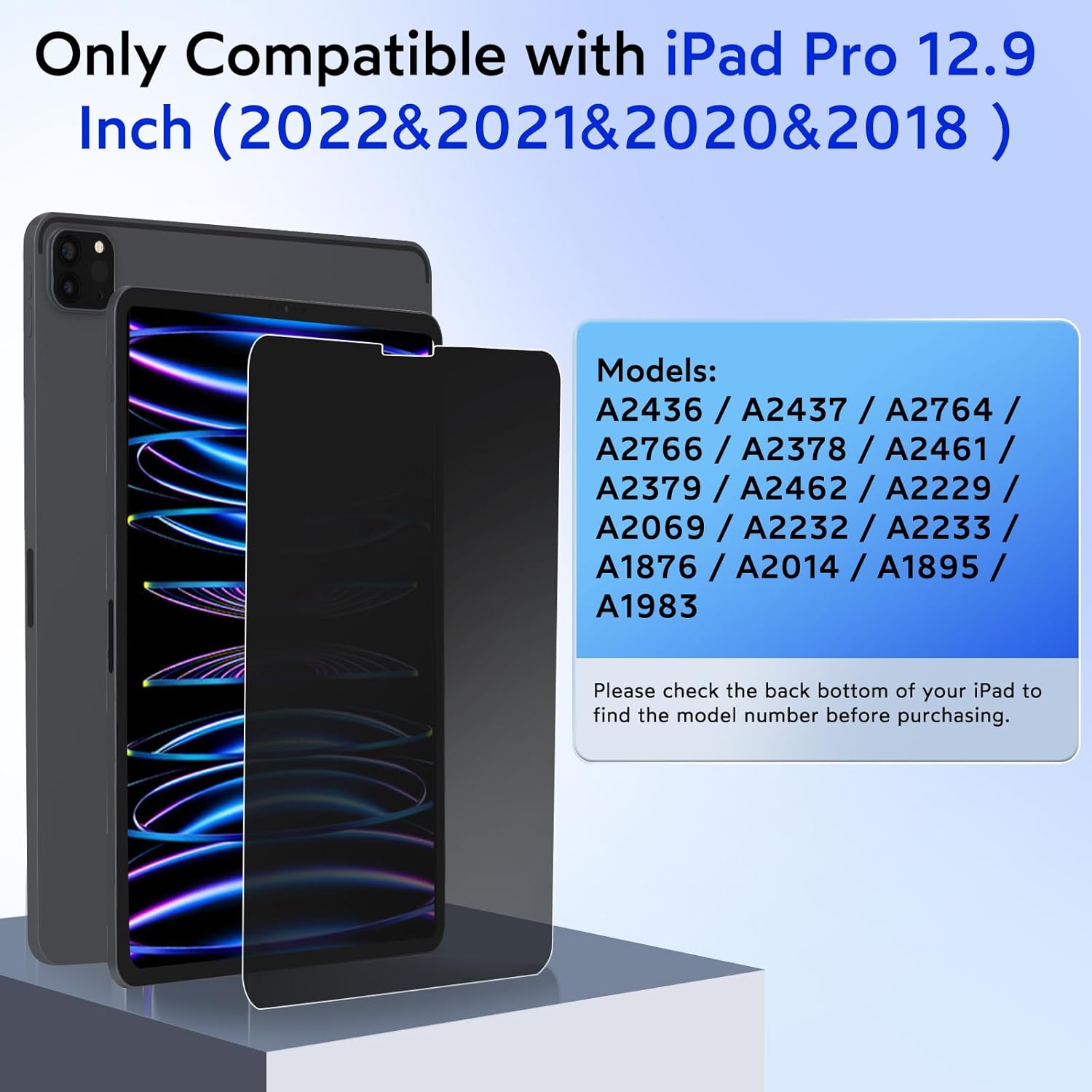 - Compatibility: MOBDIK privacy tempered glass screen protector is designed for iPad Pro 12.9 (6th / 5th / 4th / 3rd Generation. Compatible Models: A2436/ A2764/ A2437/ A2766/ A1876/ A2014/ A1895/ A2229/ A2069/ A2232/ A2378/ A2379/ A2461. Please carefully check your iPad model before purchasing